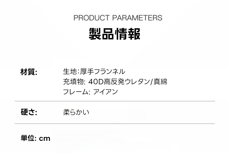 - 【高品質素材で耐久性抜群】:厚手のフランネル生地を使用し、耐摩耗性に優れています。また、40D高反発ウレタンと真綿の充填材が、柔らかく快適な座り心地を提供します。頑丈なアイアンフレームで安定感があり、長期間安心して使用できます。