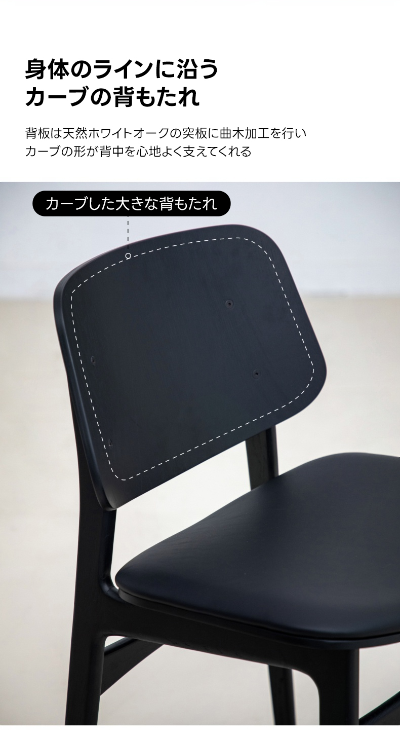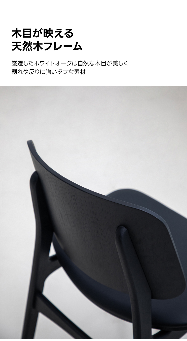 - 【高品質な素材とデザイン】:フレームには北米産FAS級のホワイトオーク材を使用し、自然な木目が美しく、耐久性に優れています。背もたれはバーチ材積層合板とホワイトオーク材の突板で作られ、角丸加工が施されています。