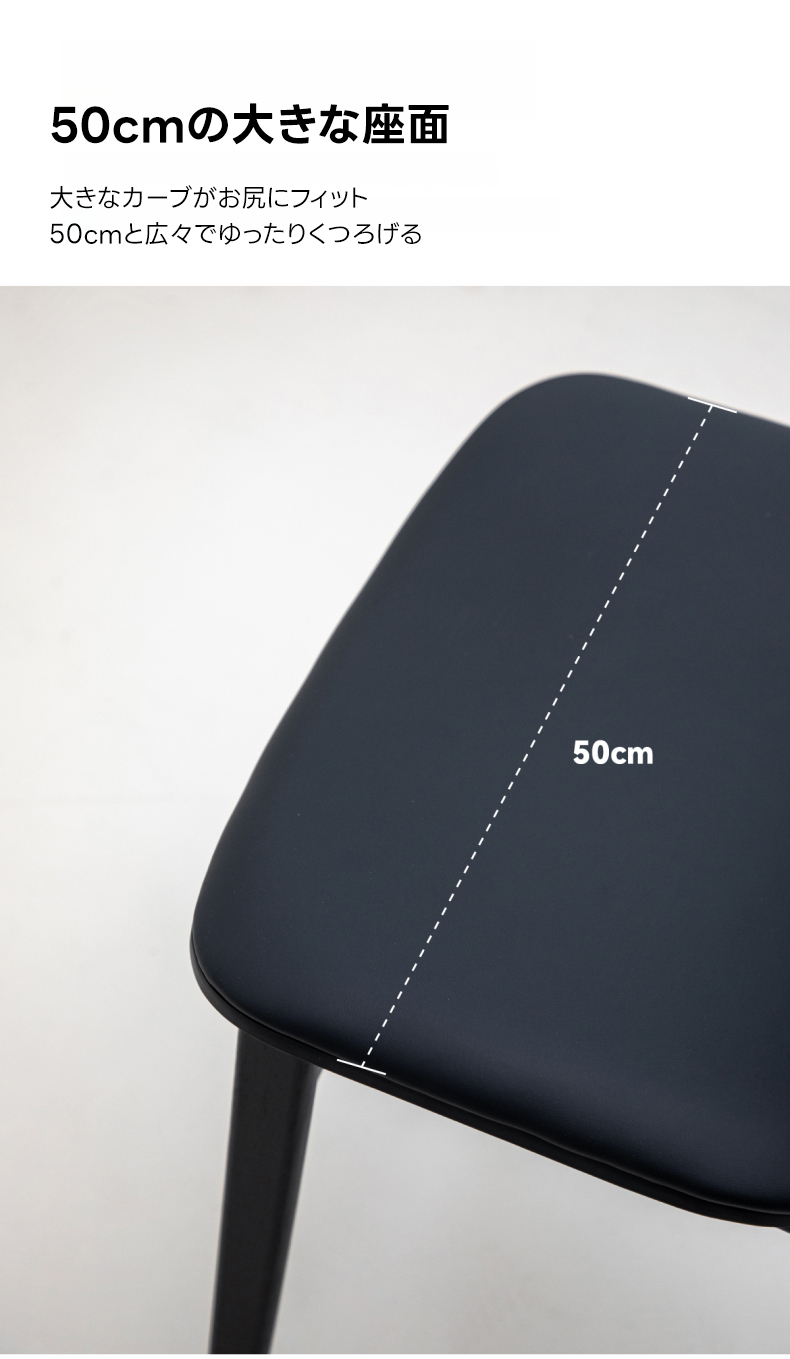 - 【快適な座り心地】:50cmの広々とした座面とPUレザーのクッションにより、長時間座っても疲れにくい快適な座り心地を提供します。背もたれのカーブ加工が身体をしっかりサポートし、腰や背中の負担を軽減します。