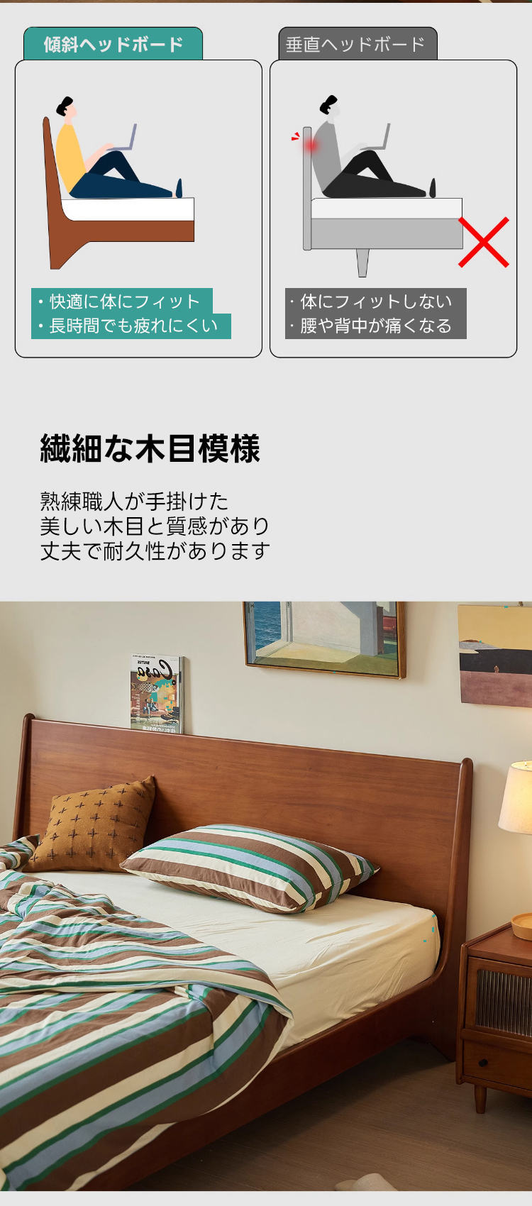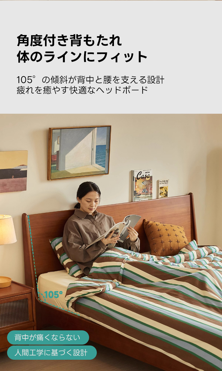 - 【高級感あふれるデザイン】木目が美しいツゲ材を使用し、熟練職人による手作業での多層塗装が施されています。105°の傾斜が背中と腰を支え、快適なヘッドボードを実現。ソフトなクッションが付属し、心地よく寄りかかれます。
