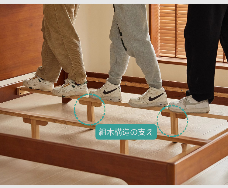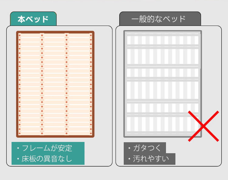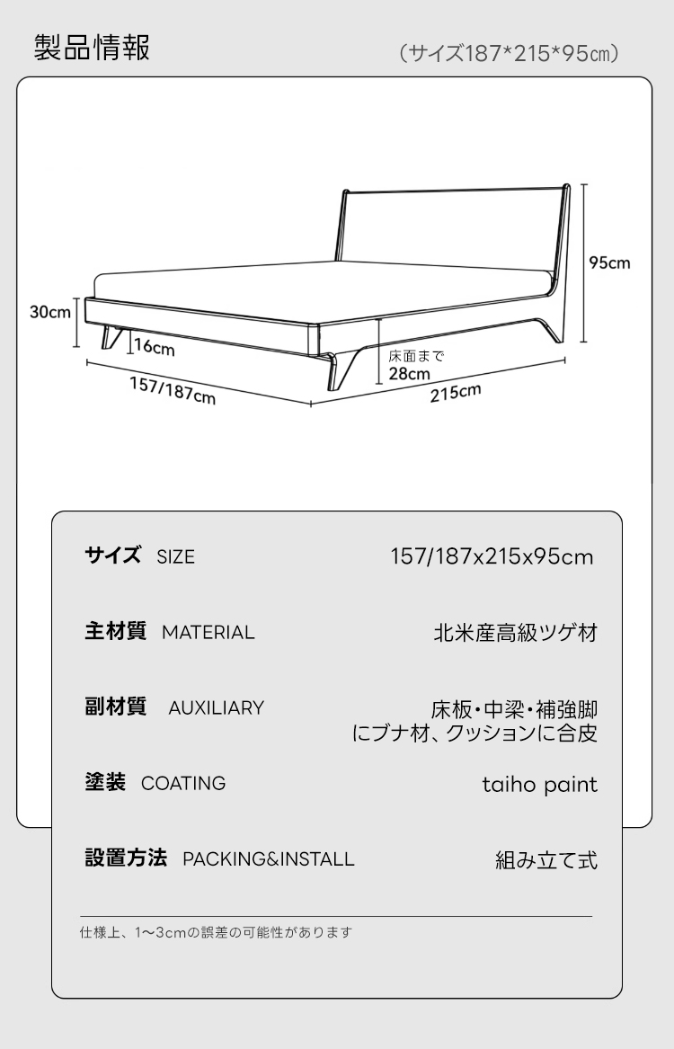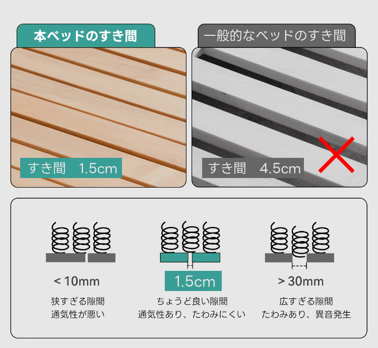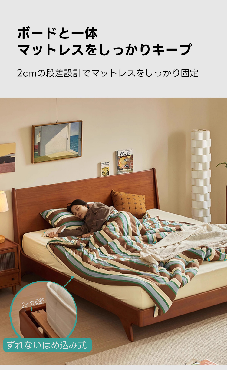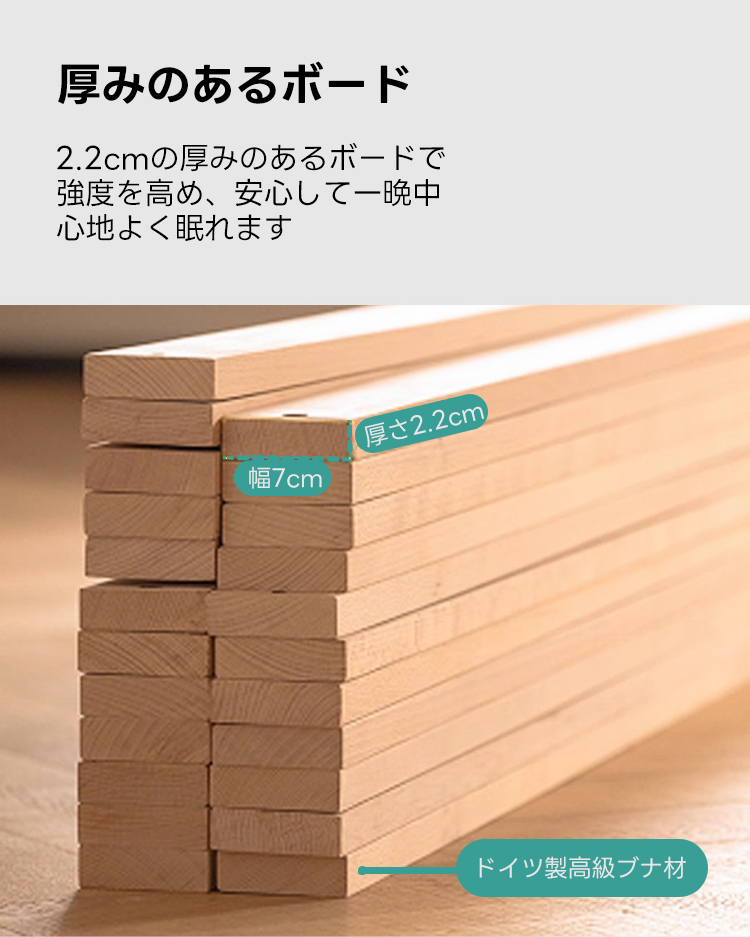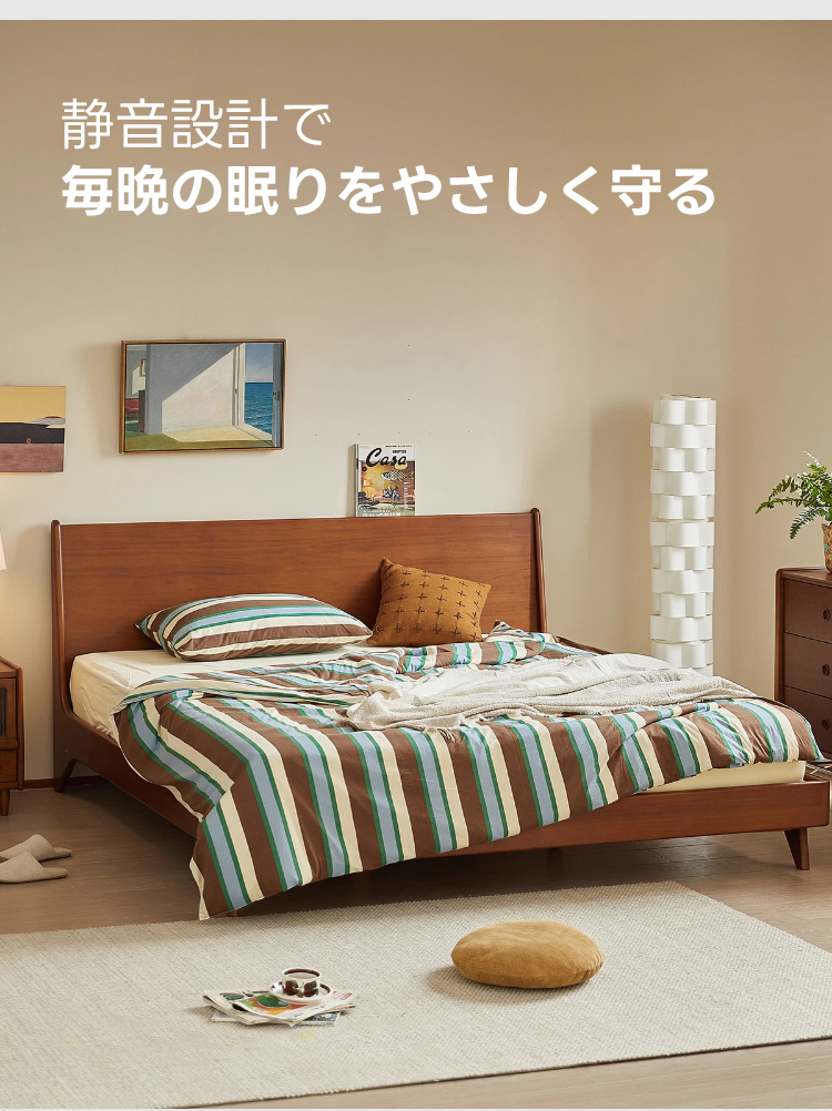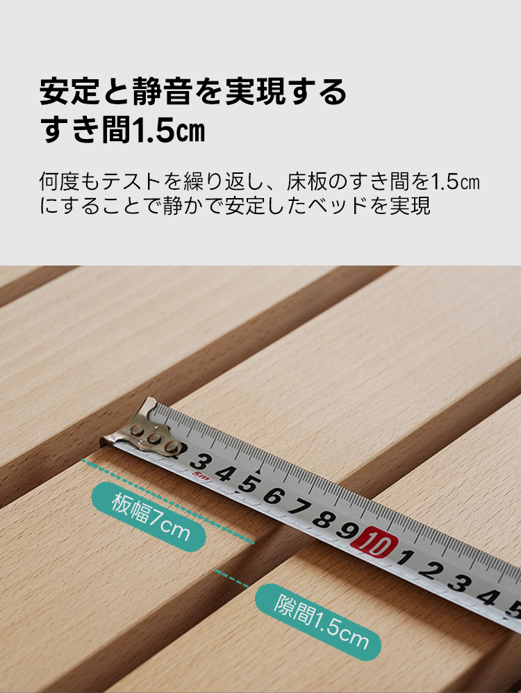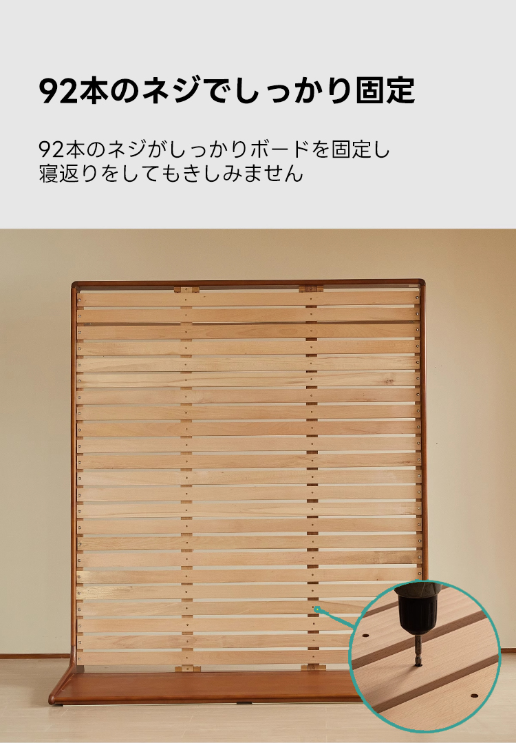 - 【快適な睡眠環境を提供】ナチュラルなベージュの色合いが寝室に落ち着きと温かみをもたらします。静音設計により、床板の隙間を1.5cmにすることで、静かで安定した眠りを提供します。92本のネジでしっかり固定され、寝返りをしてもきしみません。
