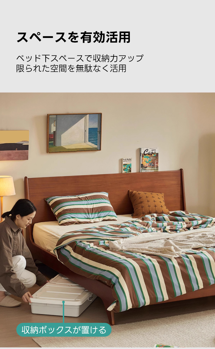 - 【スペースを有効活用】ベッド下のスペースを収納として活用でき、一人暮らしやファミリー向けに最適です。簡単に組み立てられる設計で、引越しや模様替えにも便利です。ナチュラルなデザインと高級感あふれる素材が、あなたの寝室をより魅力的に演出します。