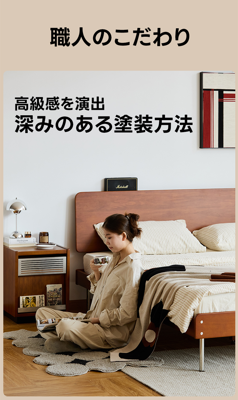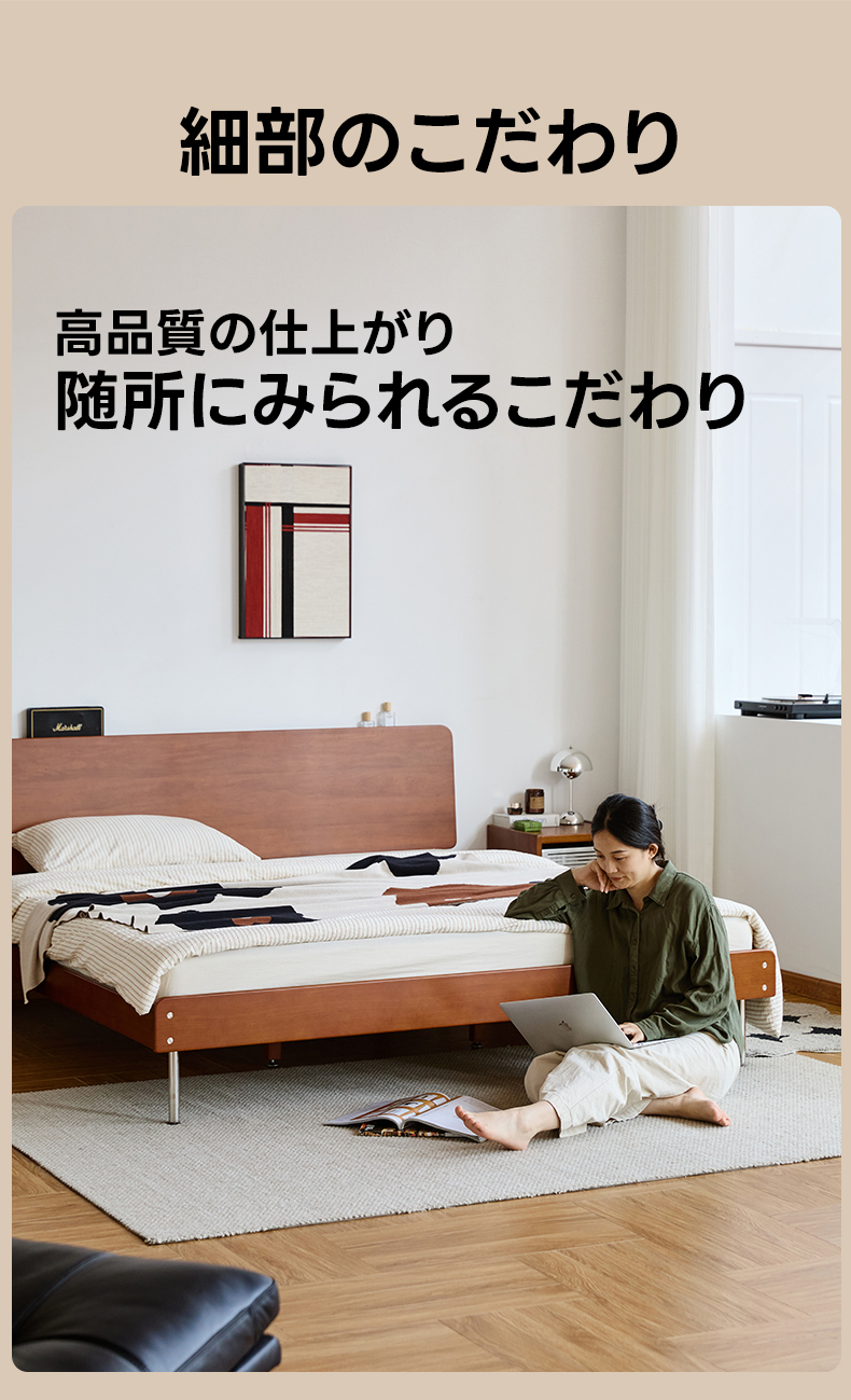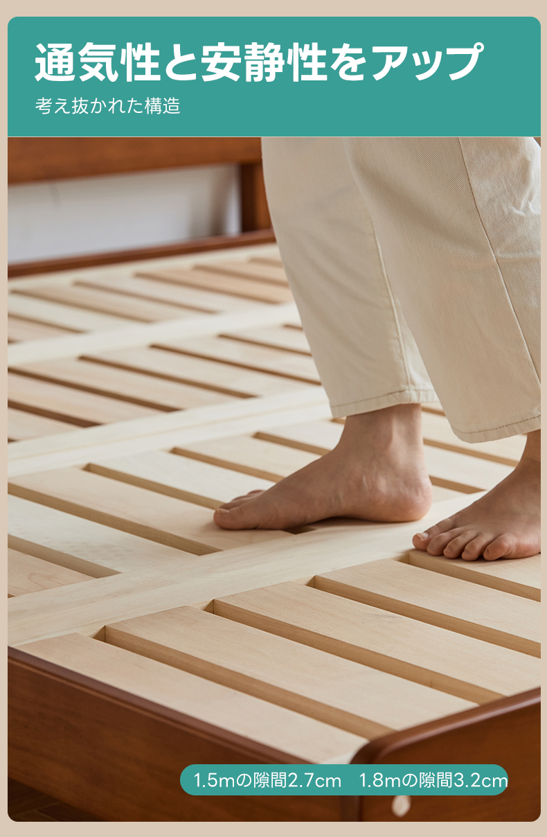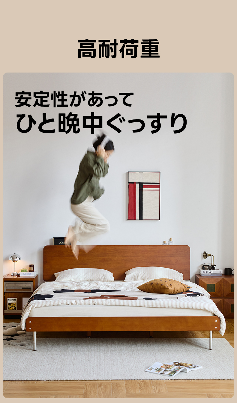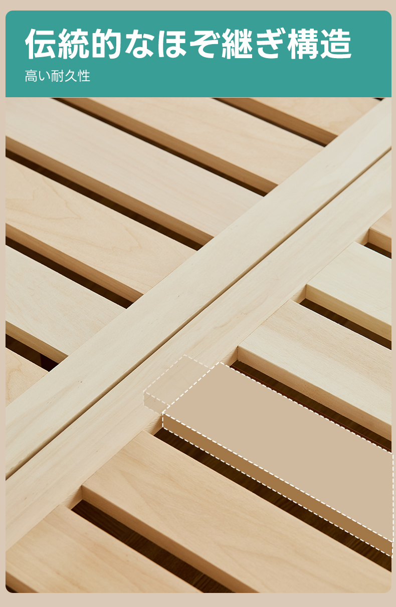 - 【高級素材と頑丈な構造】このベッドは、北米産FASグレードのツゲ材を使用し、耐久性と美しい木目を実現しています。頑丈なほぞ継ぎ構造と二重ロックで接合部がしっかり固定され、安全性も確保されています。