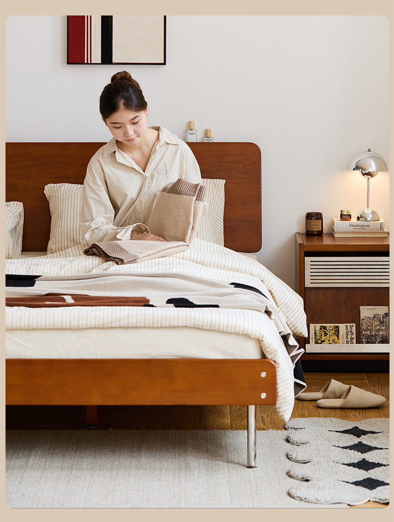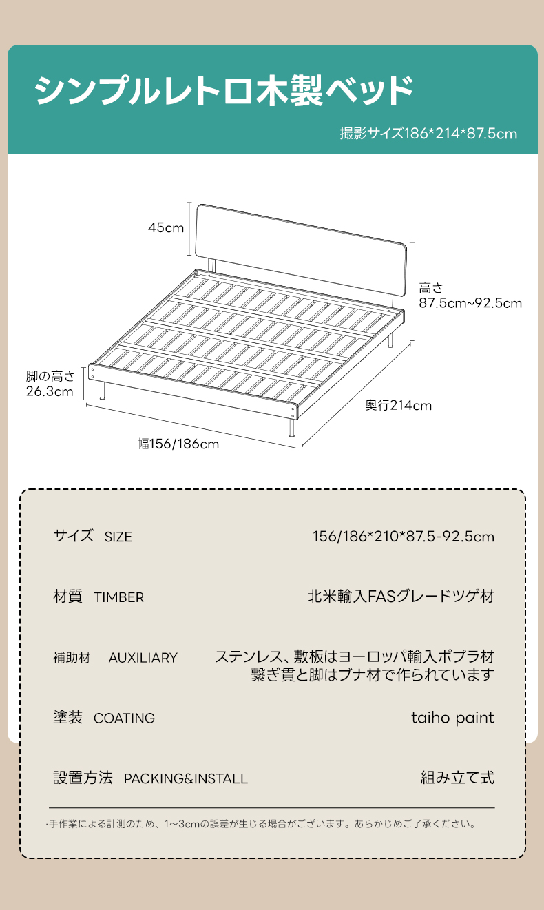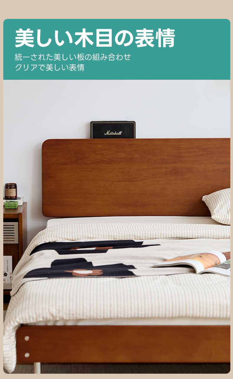 Woody Prime Boxツゲ材 シンプルレトロ木製ベッド