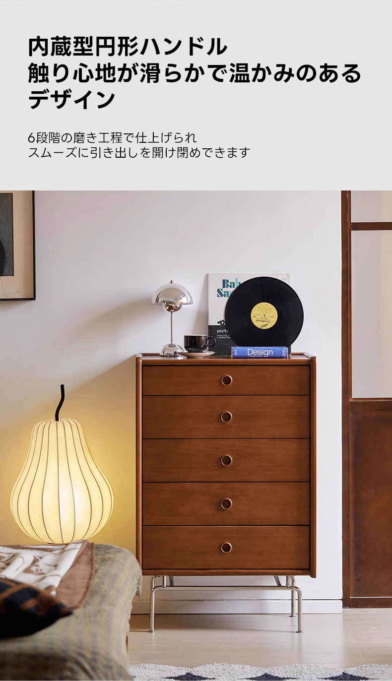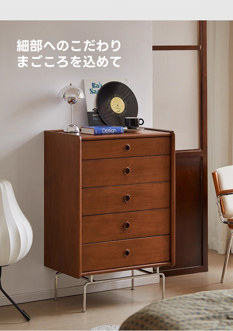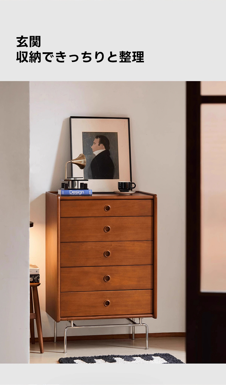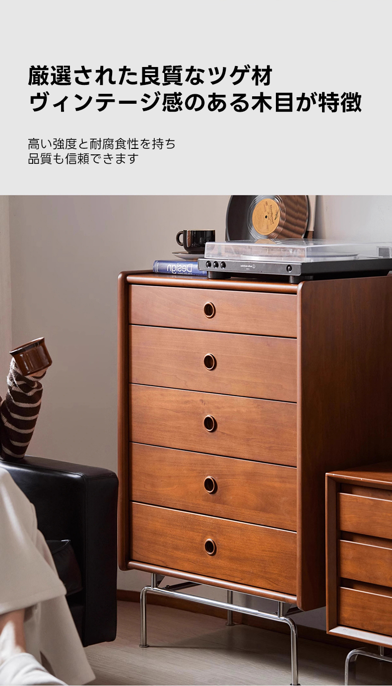 - 【多用途の大容量収納】5段の引き出しを備えたこのキャビネットは、衣類や雑貨を整理するのに最適です。内蔵型円形ハンドルでスムーズな開閉が可能。リビングや寝室、玄関など様々な場所で活躍します。