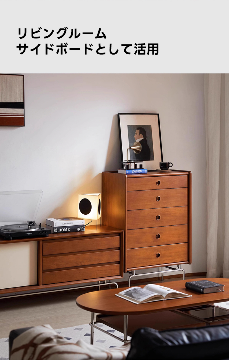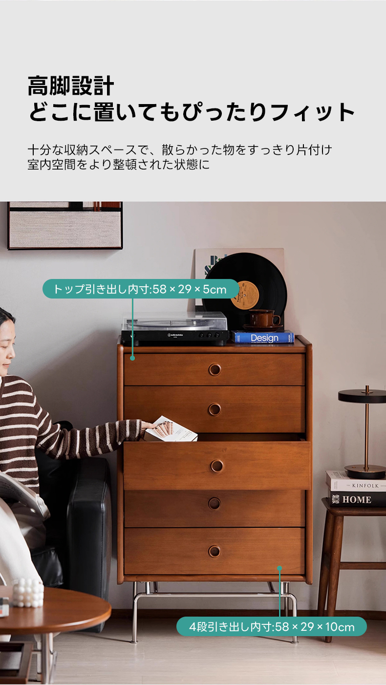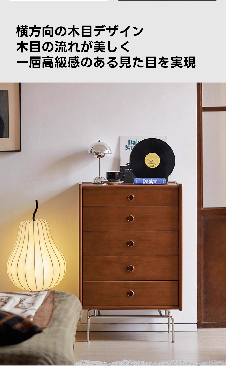 - 【多用途の大容量収納】5段の引き出しを備えたこのキャビネットは、衣類や雑貨を整理するのに最適です。内蔵型円形ハンドルでスムーズな開閉が可能。リビングや寝室、玄関など様々な場所で活躍します。