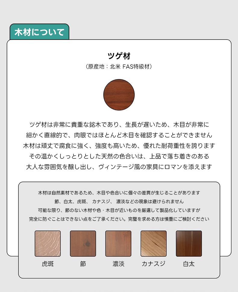 - 【ナチュラルでヴィンテージなデザイン】ツゲ材のナチュラルなベージュとヴィンテージ感のある木目が、どんなインテリアにも自然に溶け込みます。カップルやファミリーにぴったりのスタイリッシュなデザインです。