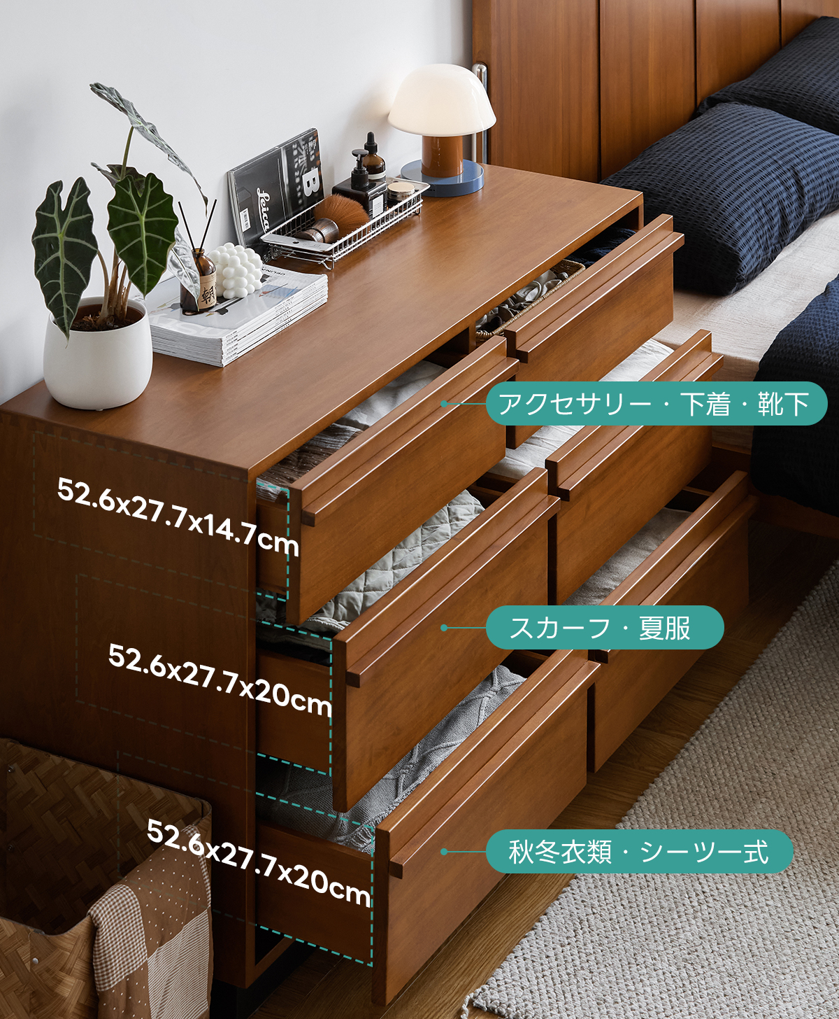 - 【多機能収納】:ヴィンテージ風6マスチェストは、6つの引き出しを備え、ティッシュや衣類、靴下などを効率的に収納できます。引き出しのサイズが異なるため、用途に応じた収納が可能です。リビングやダイニング、寝室など様々な空間に調和し、整理整頓をサポートします。