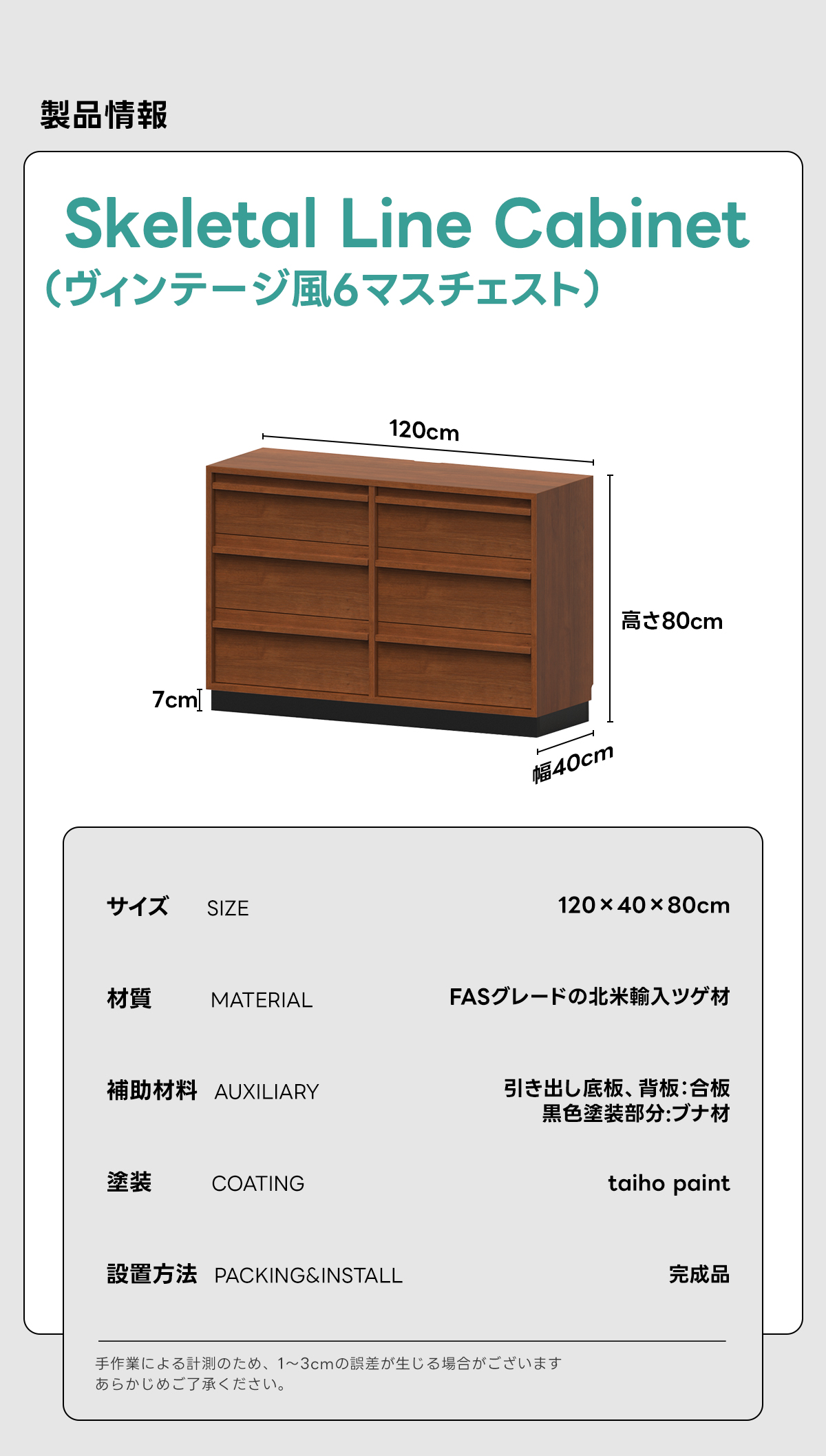 Woody Prime Boxツゲ材 ヴィンテージ風6マスチェスト