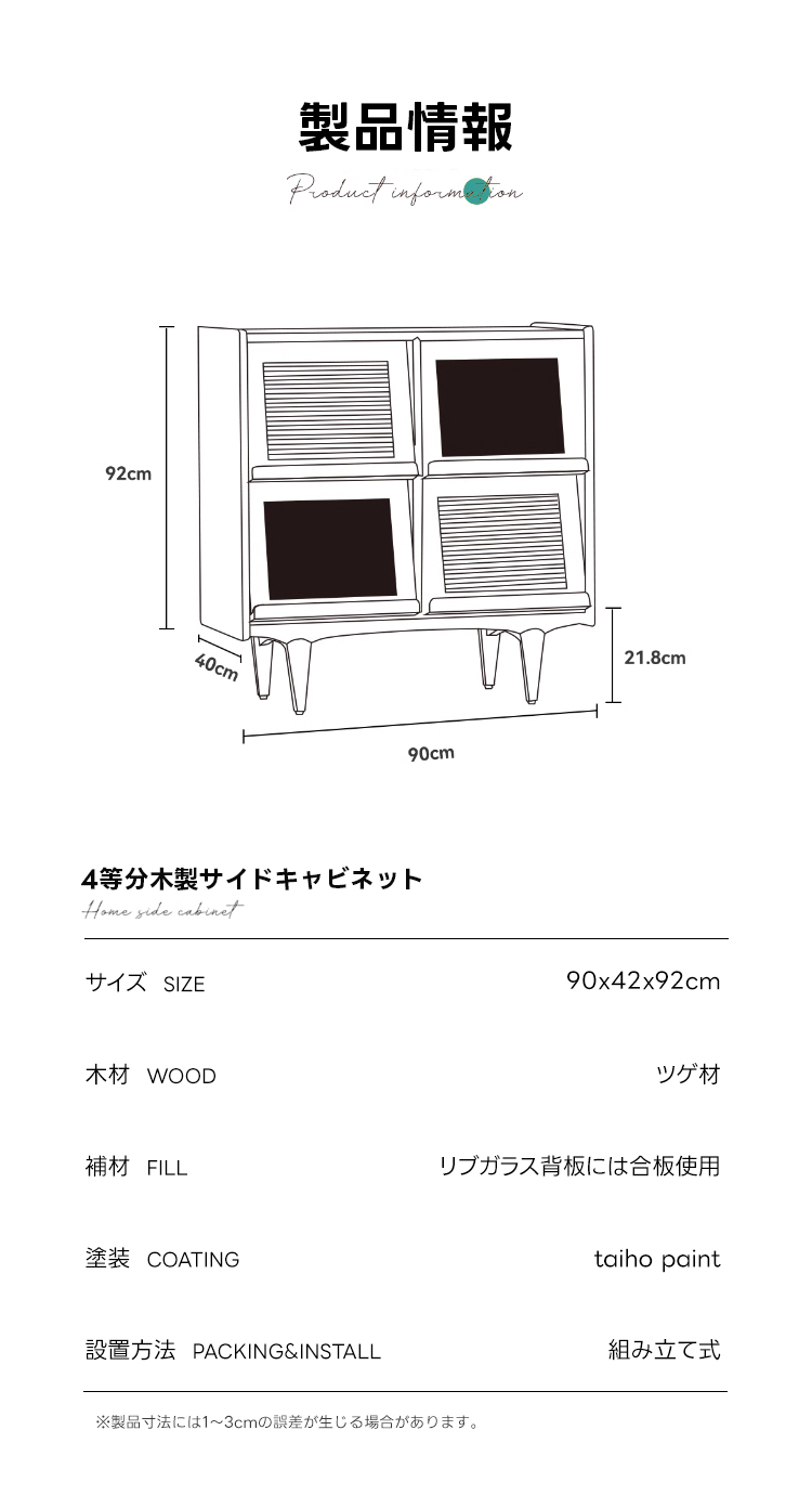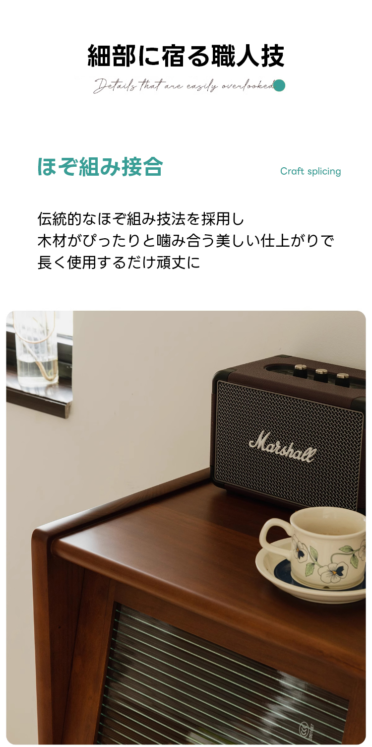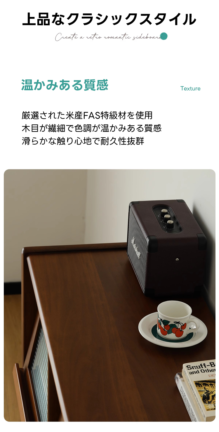 - 【高品質な素材とデザイン】:ツゲ材を使用し、リブガラスを組み合わせたデザインが特徴です。塗装にはtaiho paintを使用し、滑らかな手触りを実現しています。上品なクラシックスタイルで、長くご使用いただける耐久性を持っています。