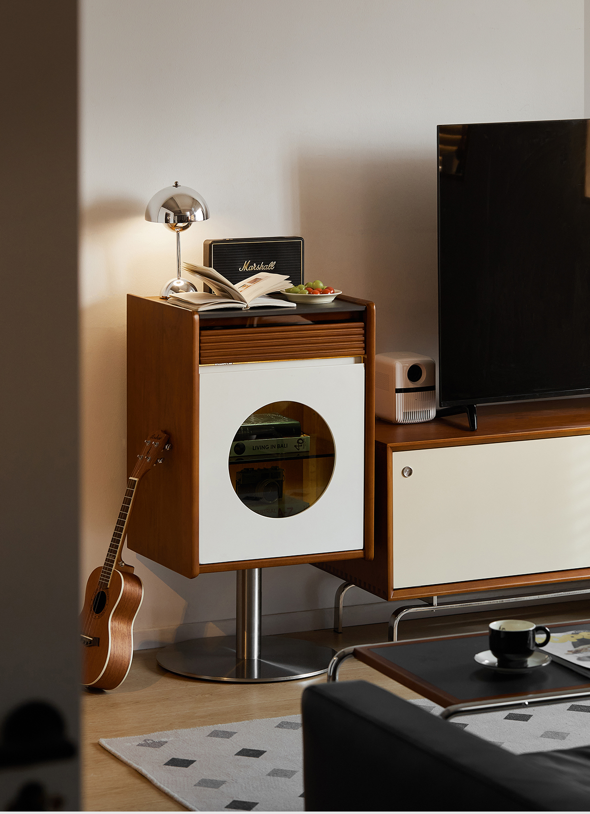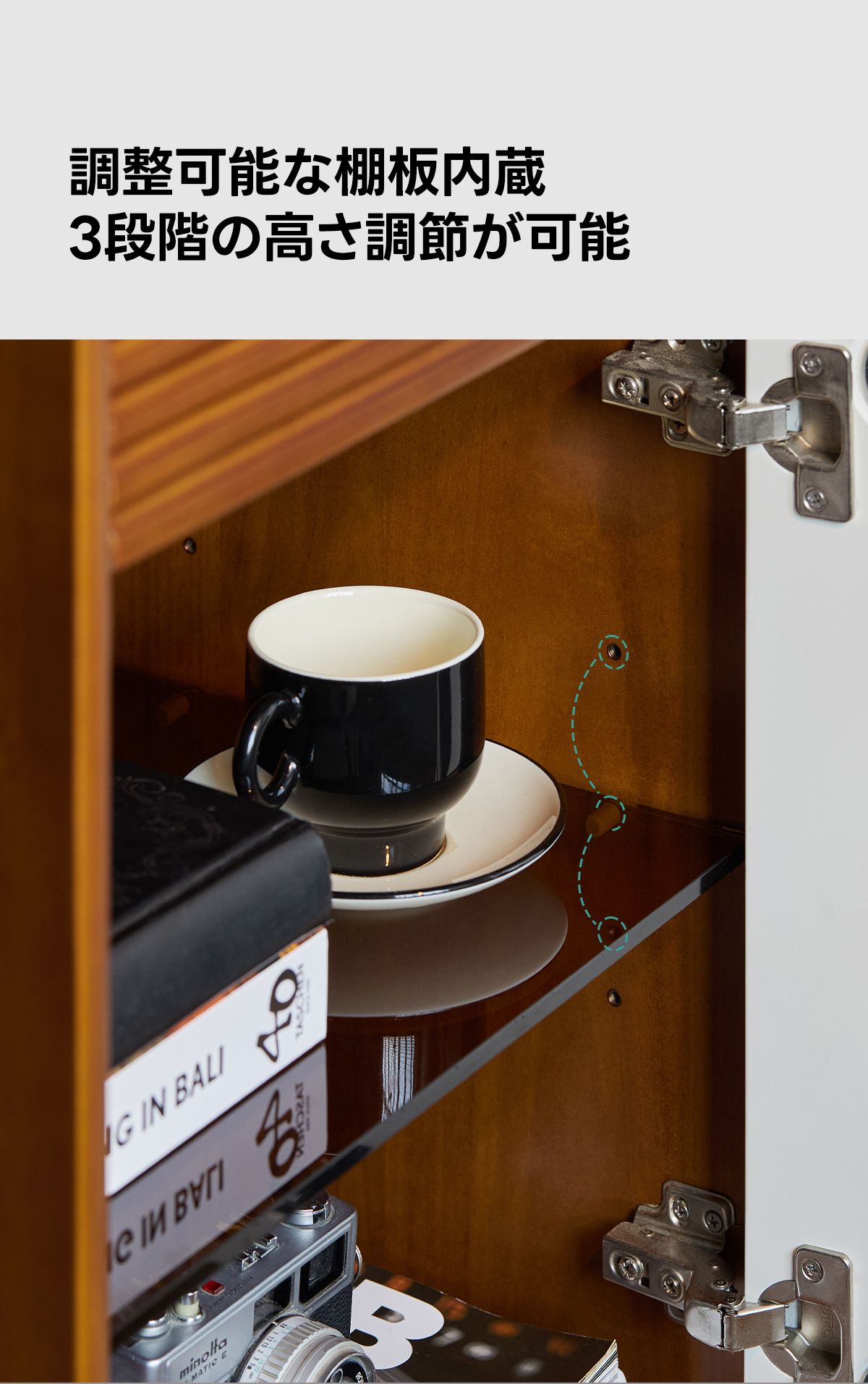 - 【優れた収納機能とコンパクト設計】ツゲ材を使用したこのサイドボードは、0.2平方メートルのコンパクトなサイズでありながら、上段の浅型引き出しと下段の調節可能な棚板により、効率的な収納を実現します。リビングや寝室での使用に最適です。