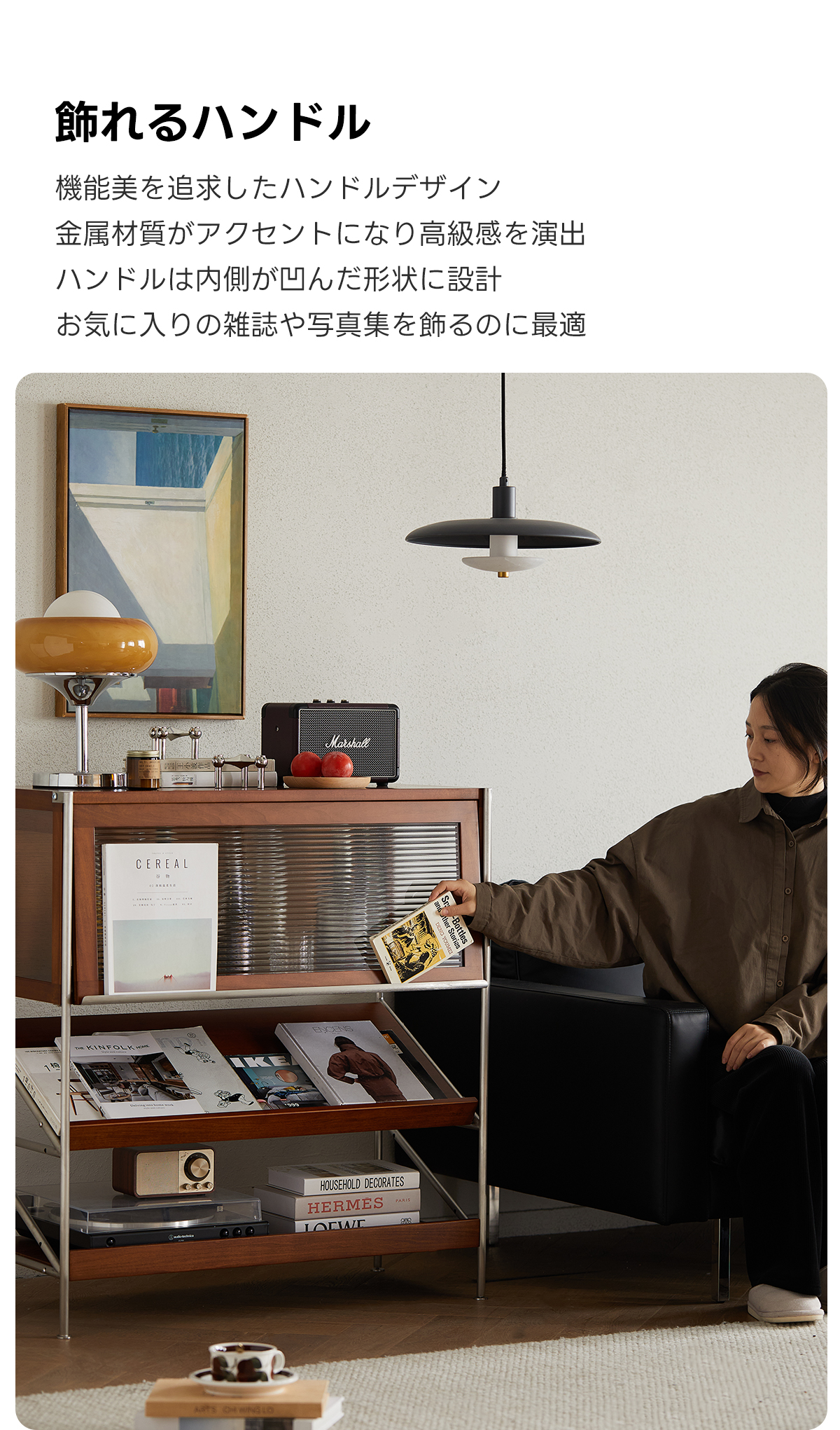 - 【多機能ゾーニング設計】:Woody Prime Boxツゲ材異素材ディスプレイキャビネットは、ガラスショーケース、ディスプレイラック、オープンラックの3つのゾーンを備えています。お気に入りのアイテムを美しくディスプレイし、雑誌や本を見せて収納するのに最適です。滑り落ち防止のストッパーフレーム付きで安心してお使いいただけます。