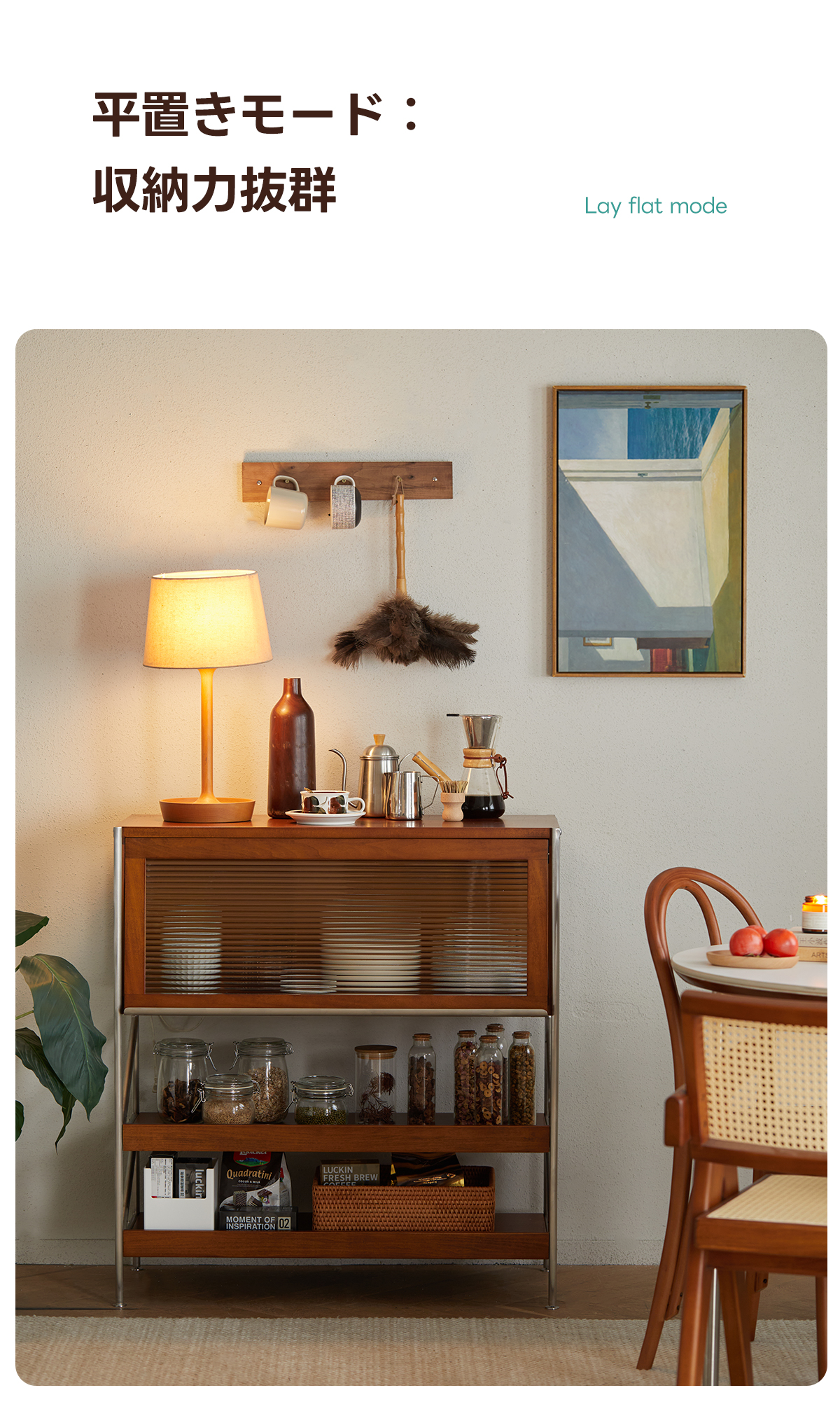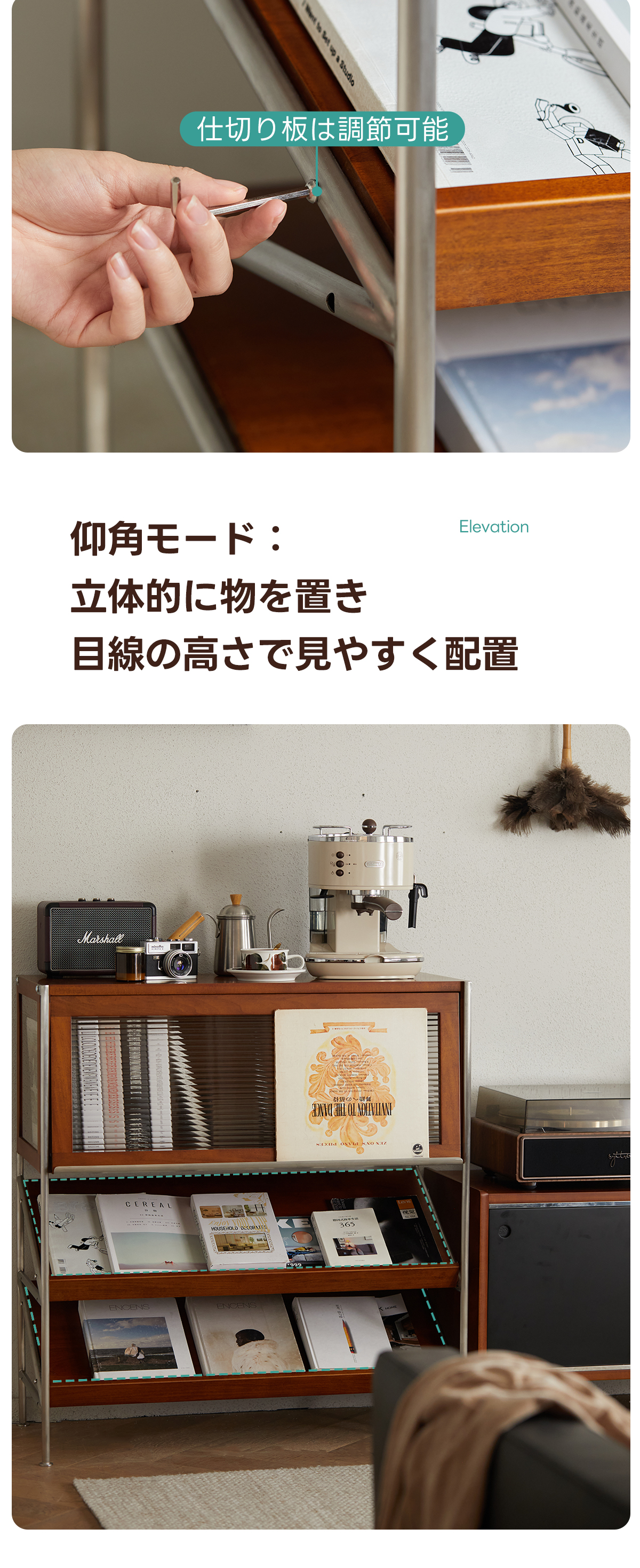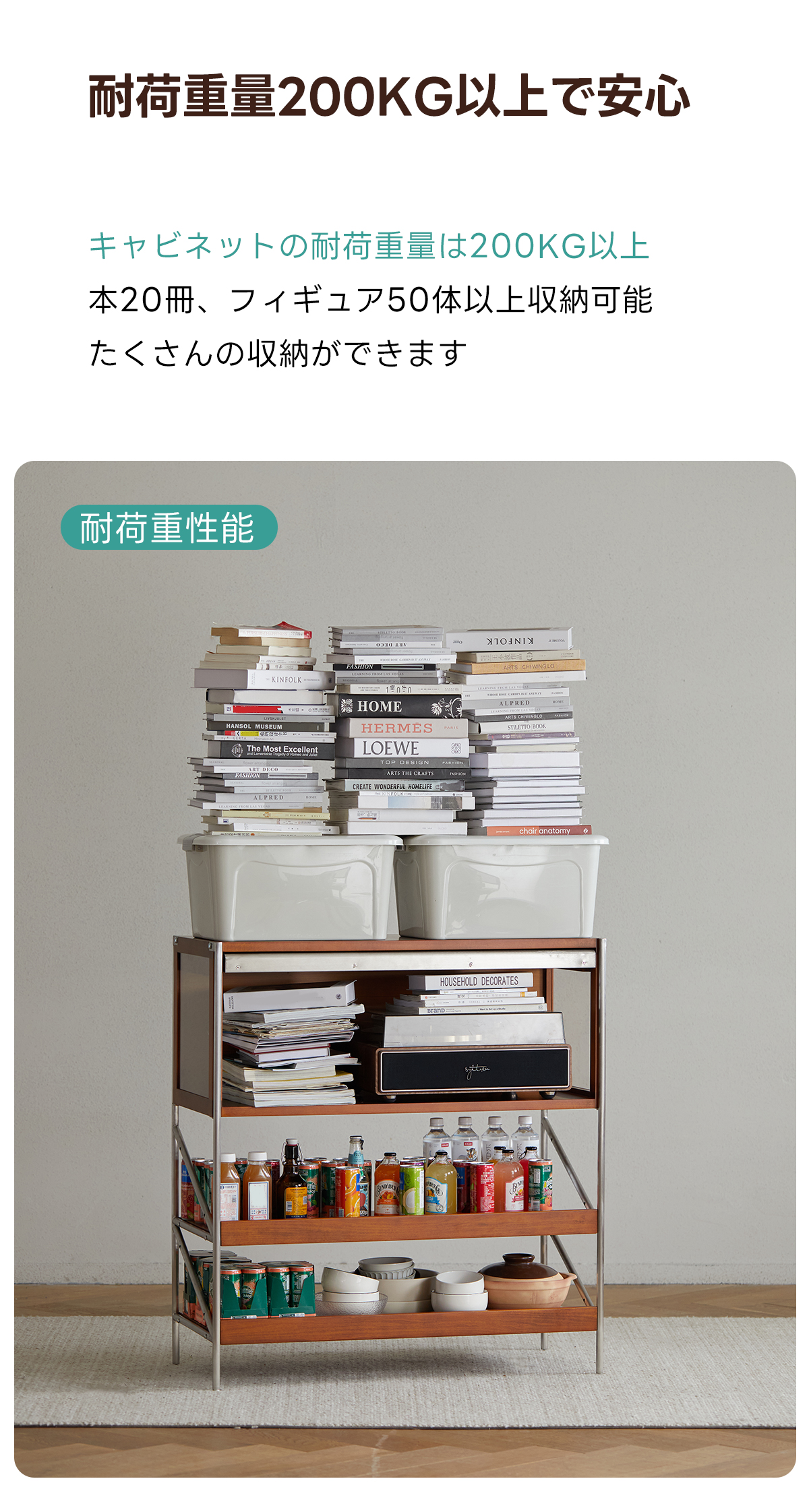 - 【高品質な素材とデザイン】:FAS級ツゲ材を使用し、耐久性と美しさを兼ね備えたステンレスフレームが重い物でも安心して収納可能。Z型サイドデザインが安定性を高めつつ、シンプルで美しいアクセントを加えます。