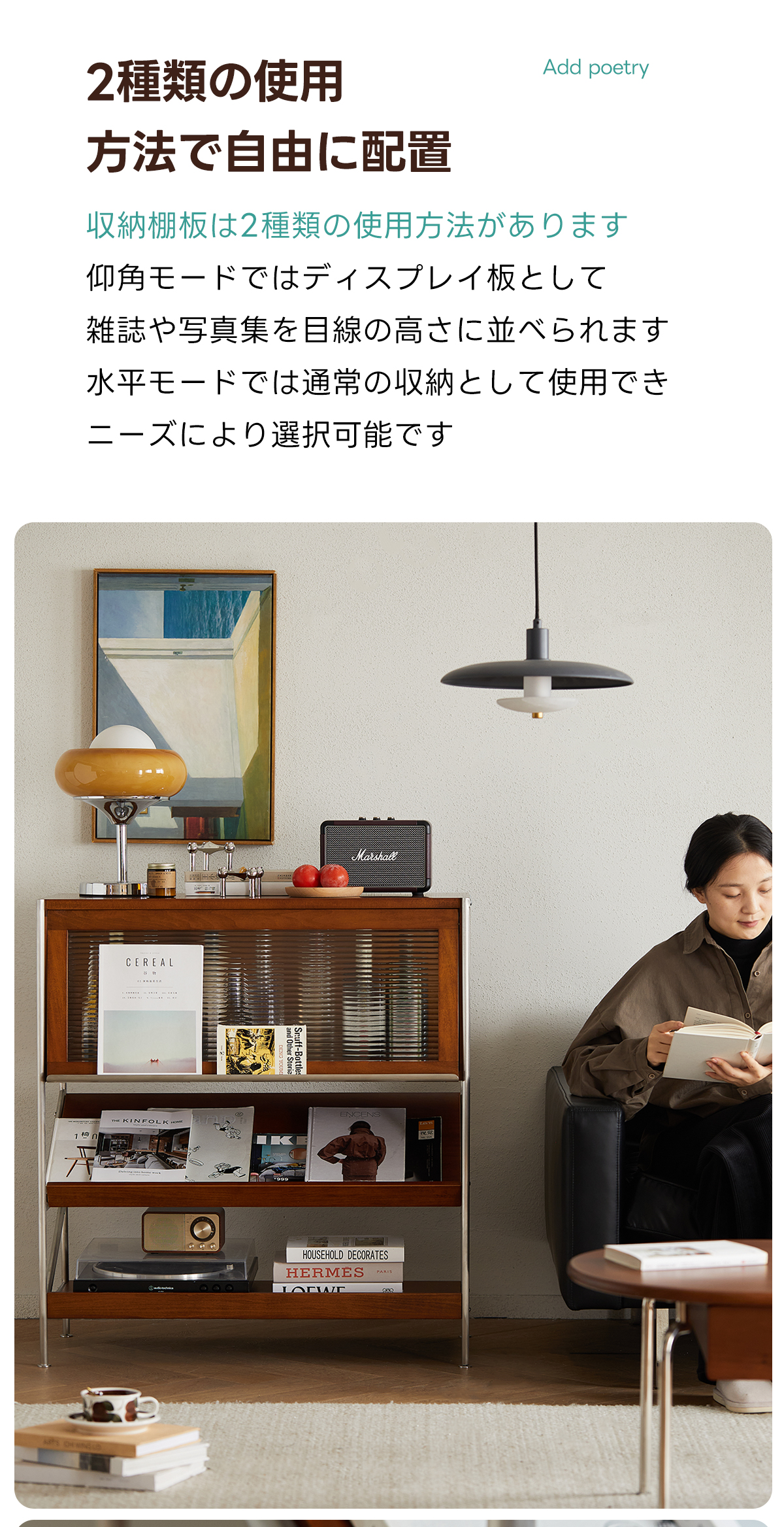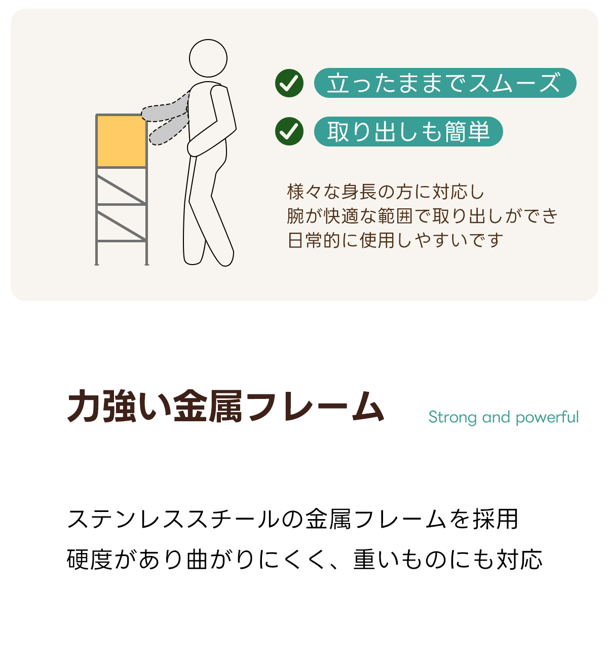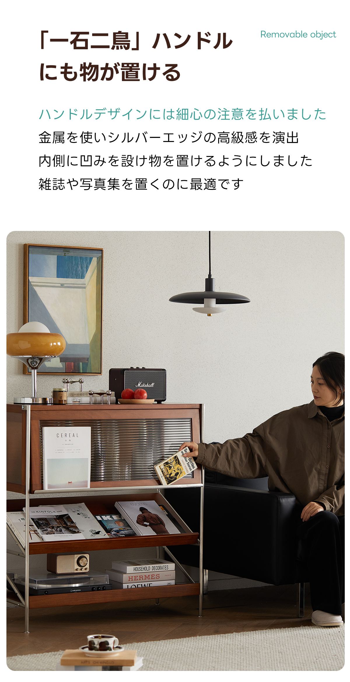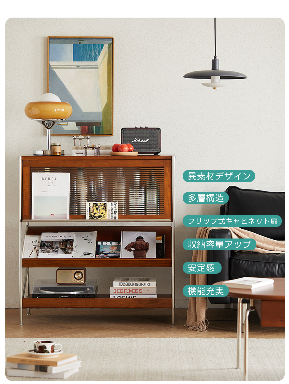 - 【高品質な素材とデザイン】:FAS級ツゲ材を使用し、耐久性と美しさを兼ね備えたステンレスフレームが重い物でも安心して収納可能。Z型サイドデザインが安定性を高めつつ、シンプルで美しいアクセントを加えます。