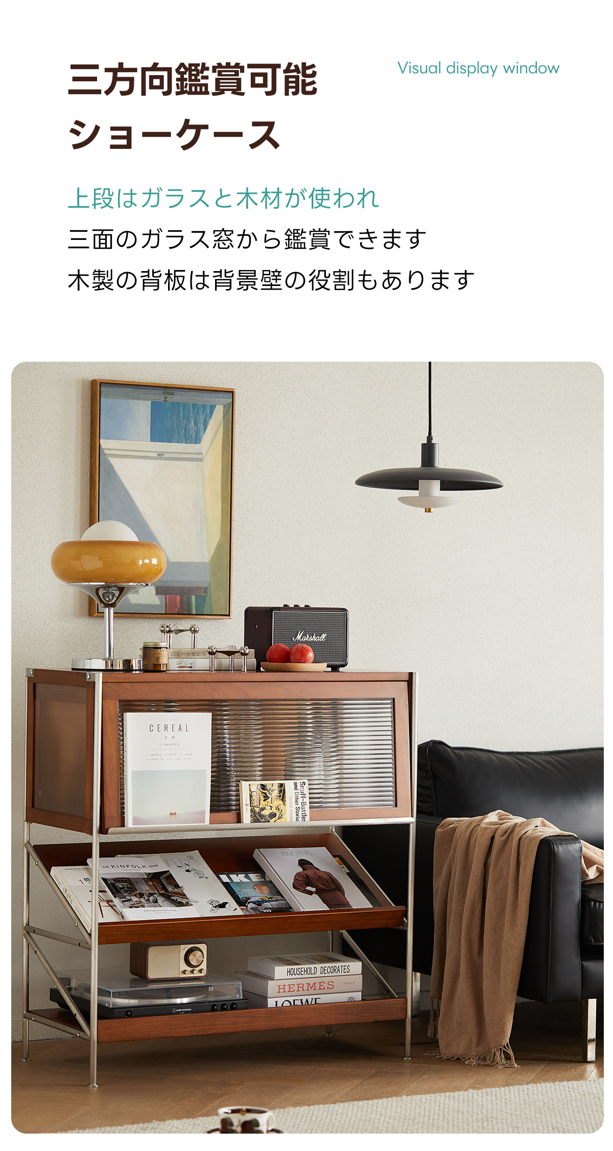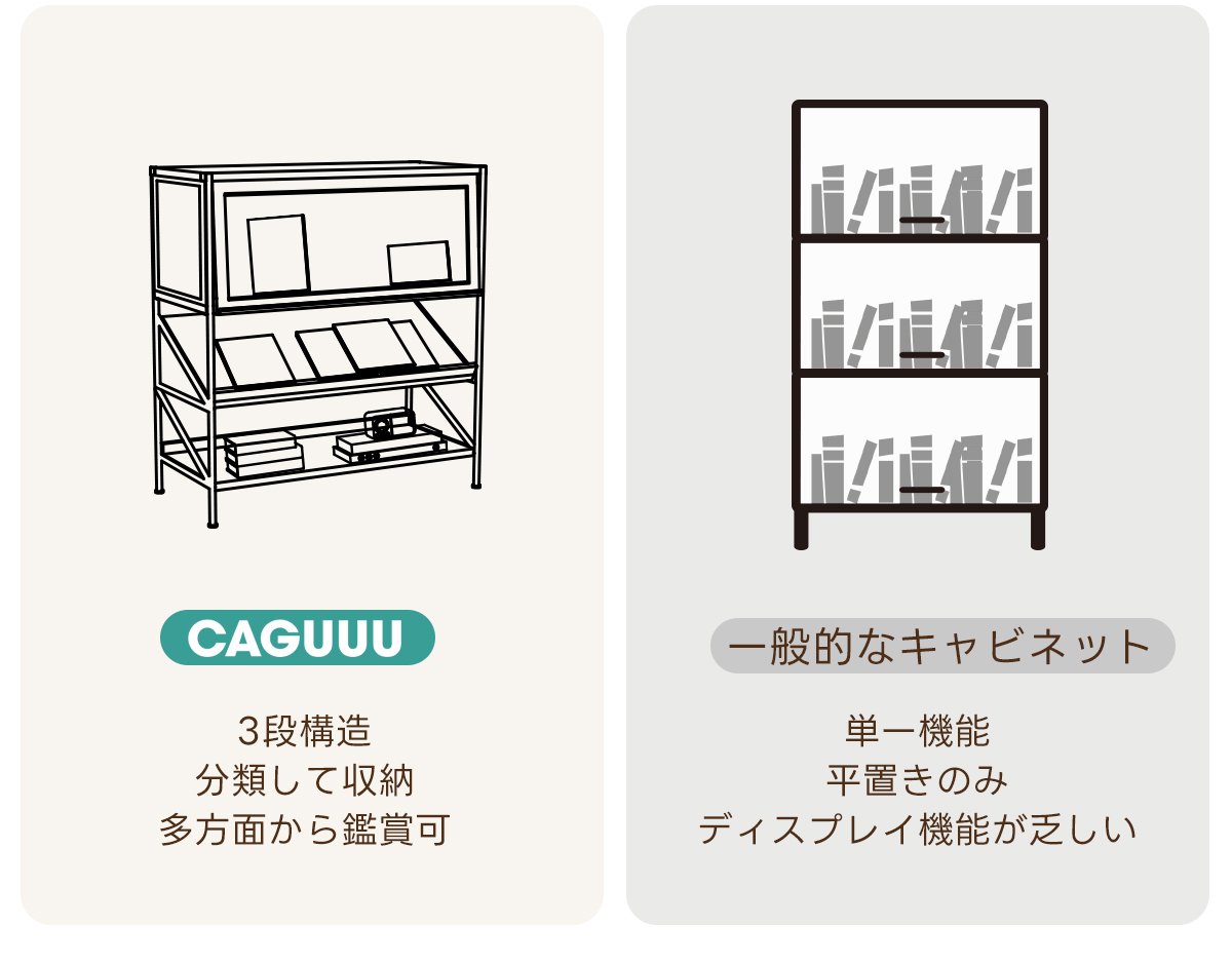 - 【多機能ゾーニング設計】:このキャビネットは、上段がガラスショーケース、中段がディスプレイラック、下段がオープンラックの三層構造で、アイテムを美しく展示しつつ、効率的に収納できます。