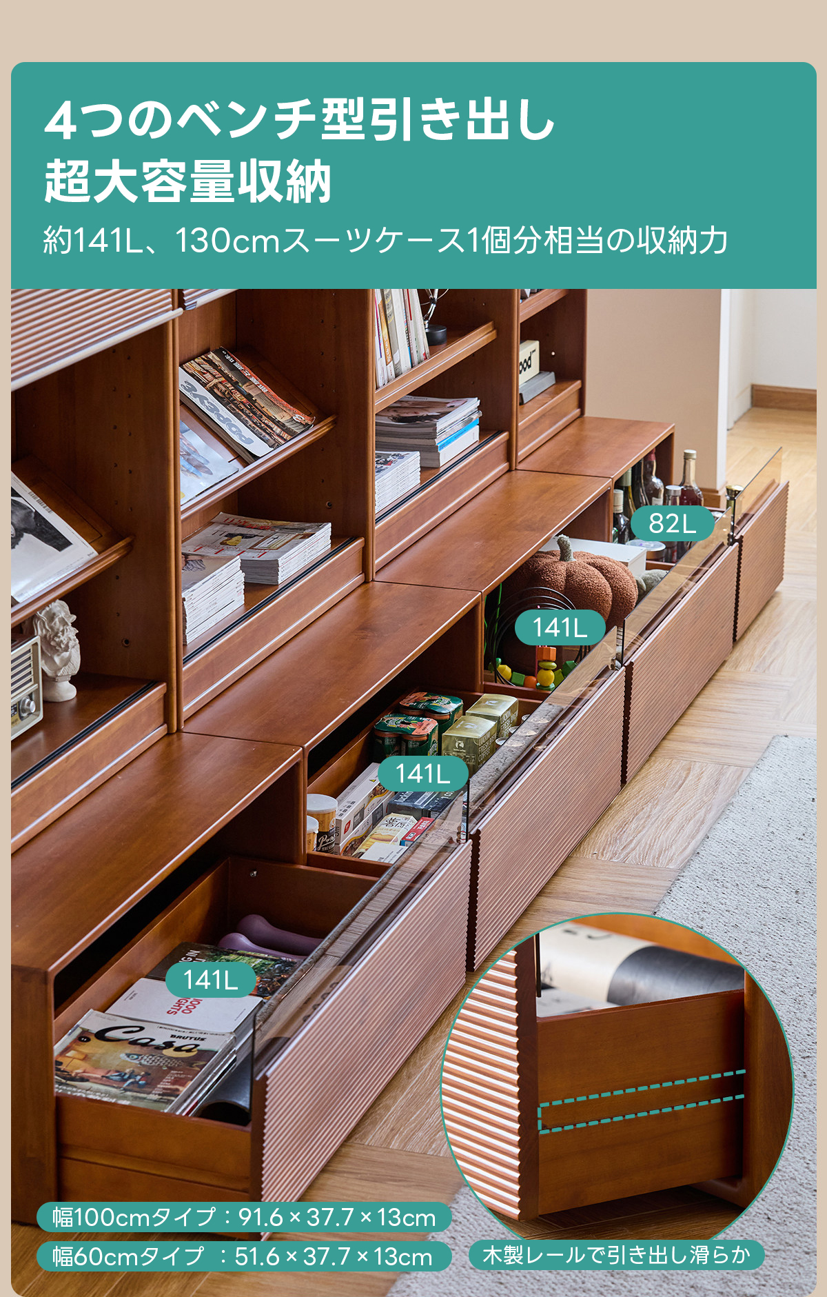- 【安心の大容量収納】引き出しは141Lの大容量で、様々なアイテムを収納できます。棚板は水平にも斜めにも設置可能で、収納方法を自由にカスタマイズできます。整理整頓が簡単にでき、すっきりとした空間を保てます。
