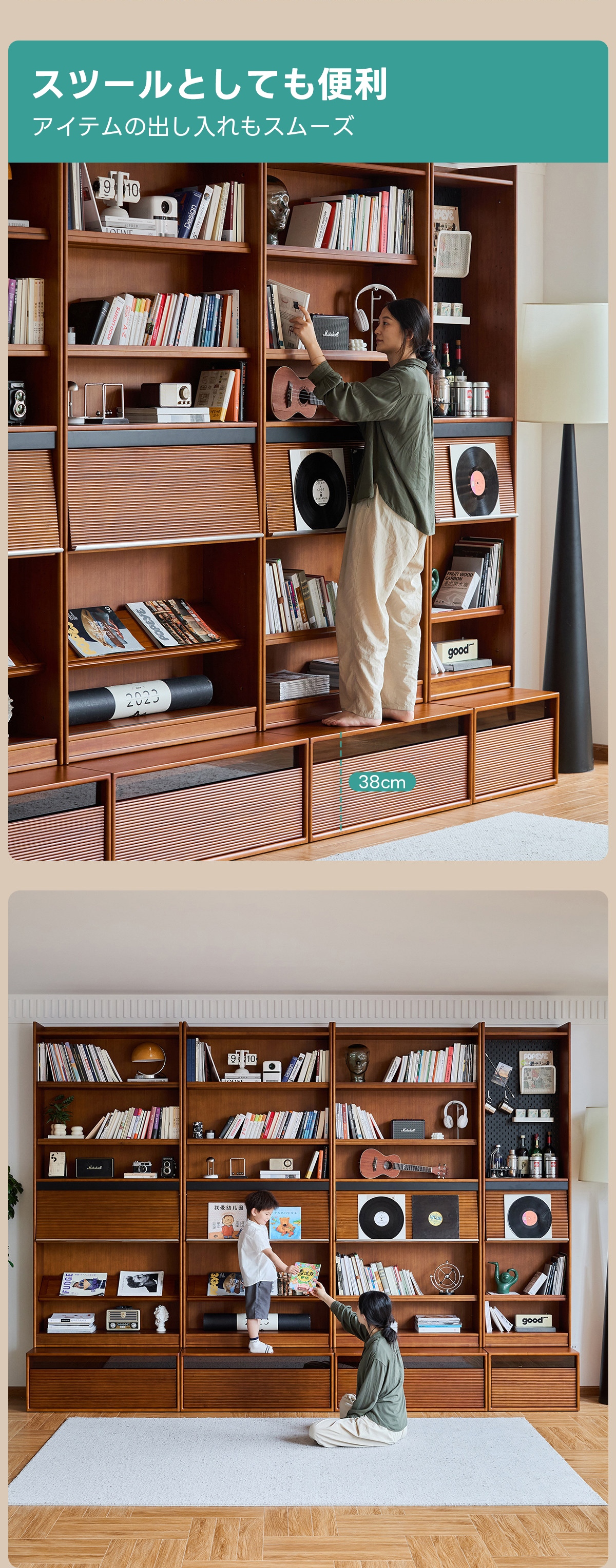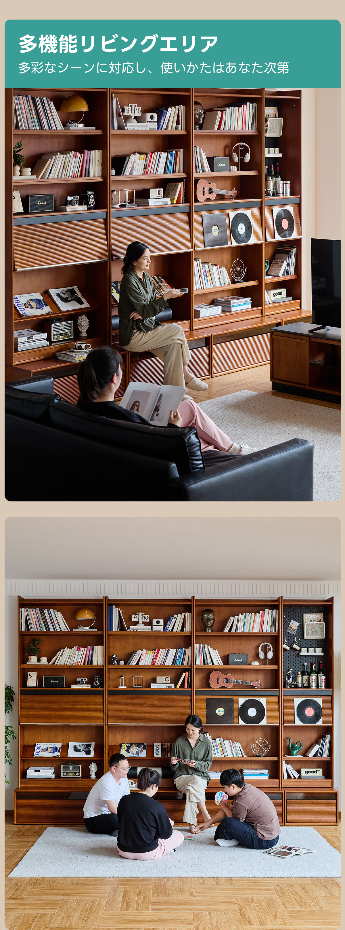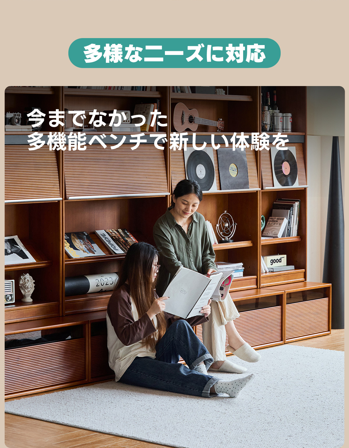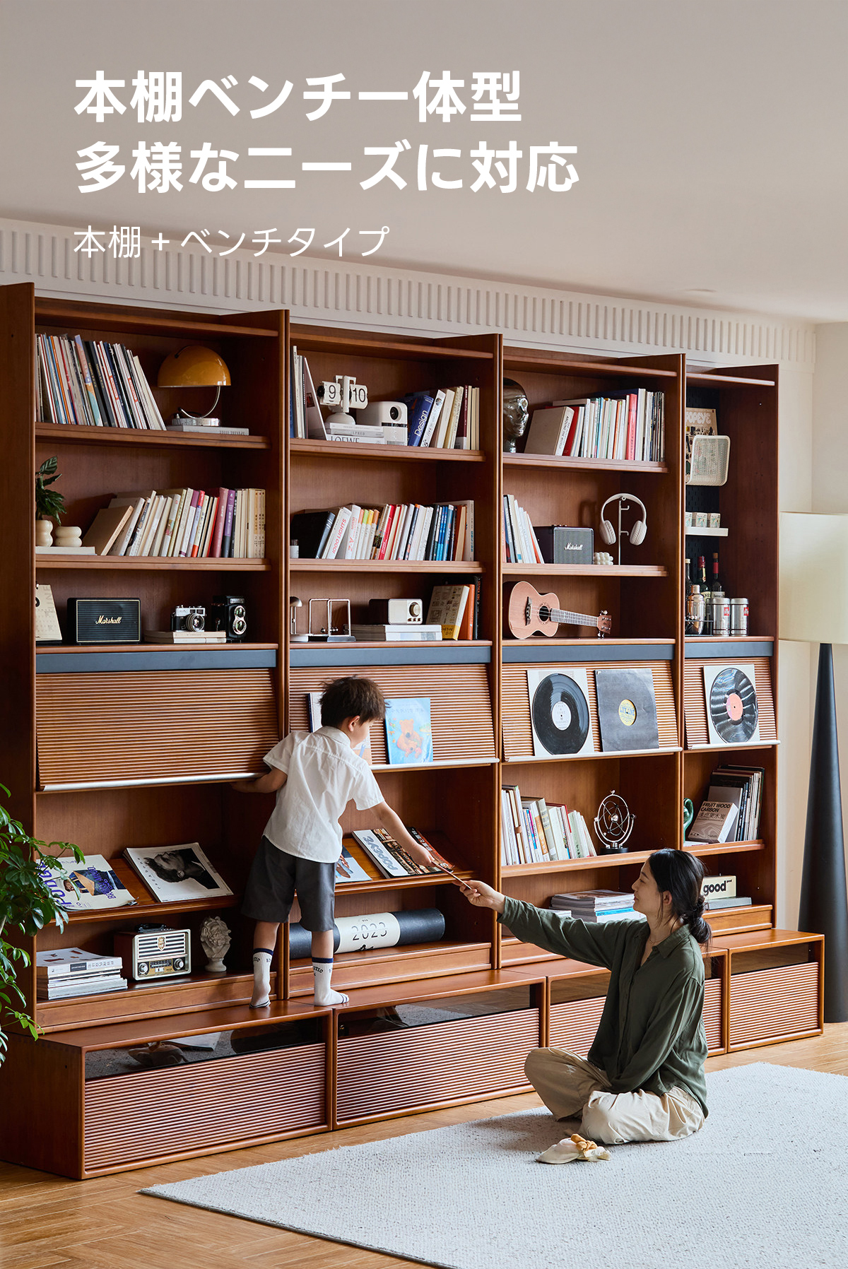 - 【多機能デザインで空間を有効活用】本棚とベンチが一体化したデザインで、収納スペースとしてだけでなく座る場所としても利用可能です。リビングや書斎、寝室など様々なシーンで活躍し、空間を有効に活用できます。