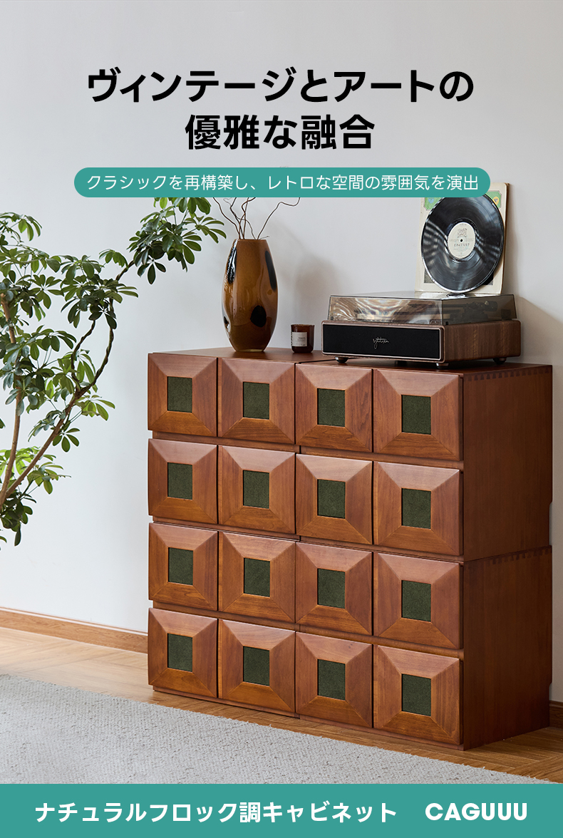 Woody Prime Boxツゲ材 ナチュラルフロック調キャビネット