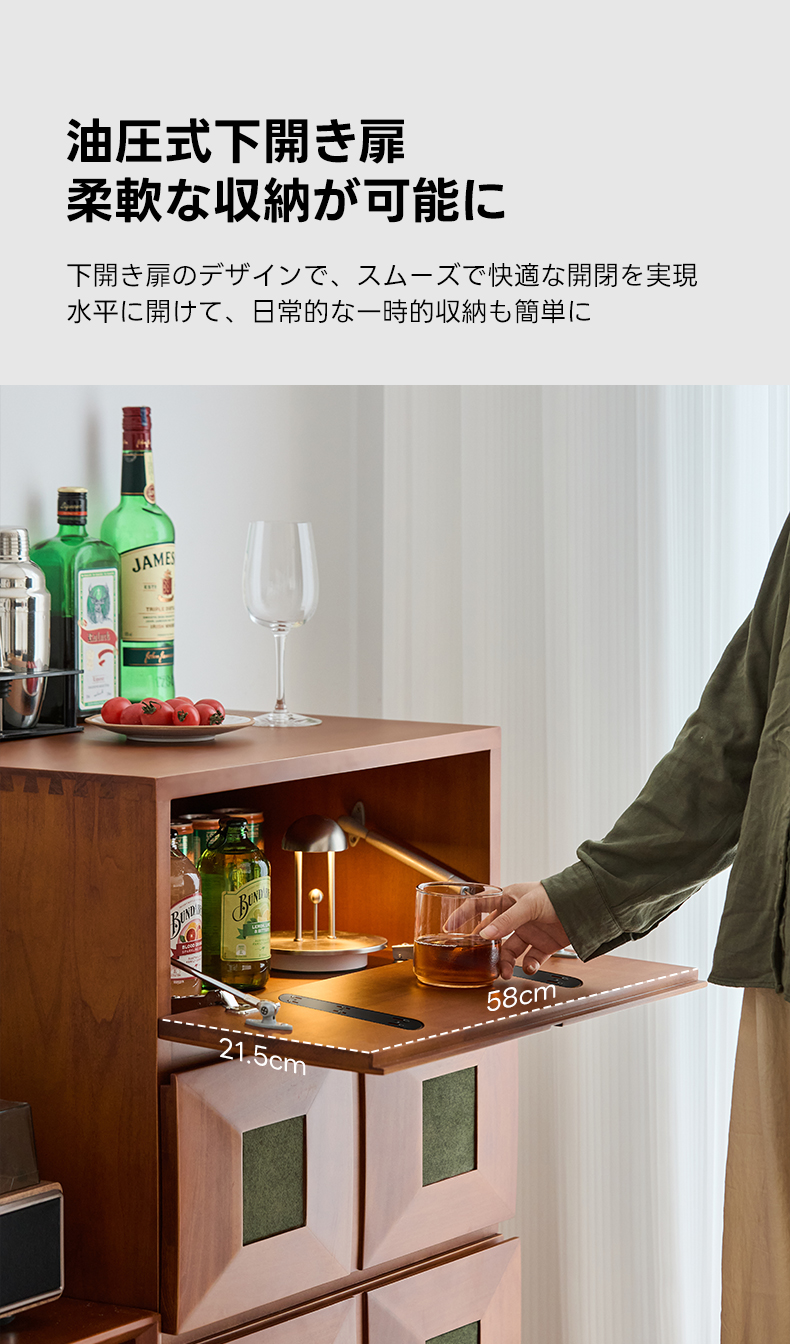 - 【優れた収納力と機能性】ツゲ材を使用したこのキャビネットは、油圧式下開き扉と大容量引き出しを備え、必要なものをすっきりと収納できます。高品質な金具ヒンジと内蔵型スチールバーにより、安定感と安心感を提供します。