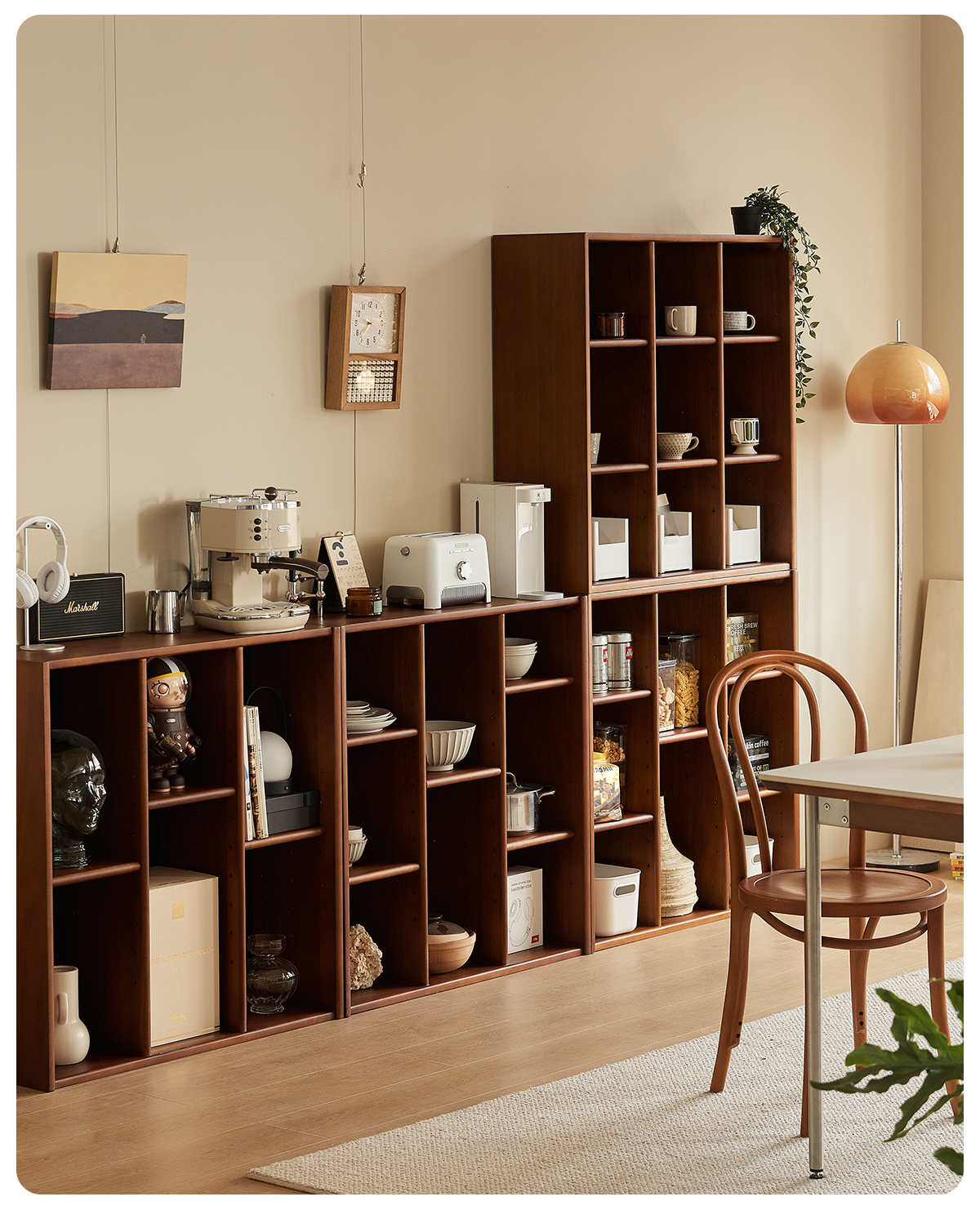 - 【柔軟な収納オプション】:9段階の高さ調整が可能な棚板により、収納する物のサイズに合わせて自由にカスタマイズ可能です。これにより、個々のニーズに応じた最適な収納スペースを確保できます。