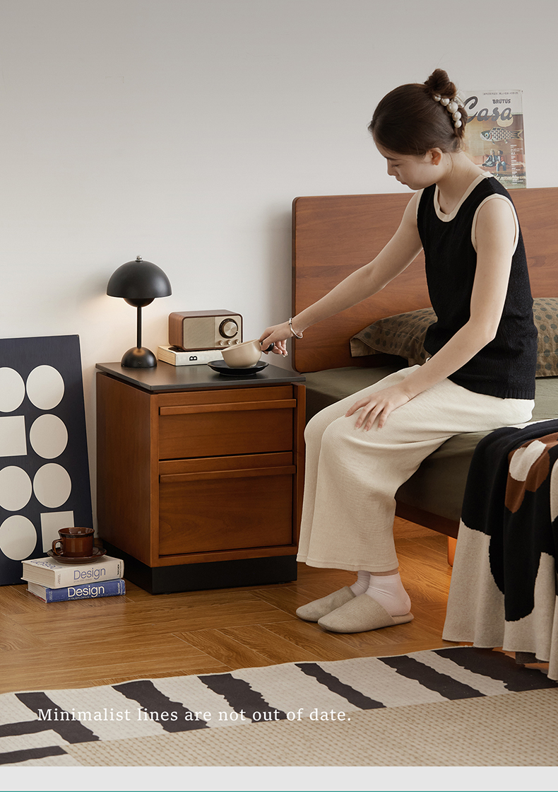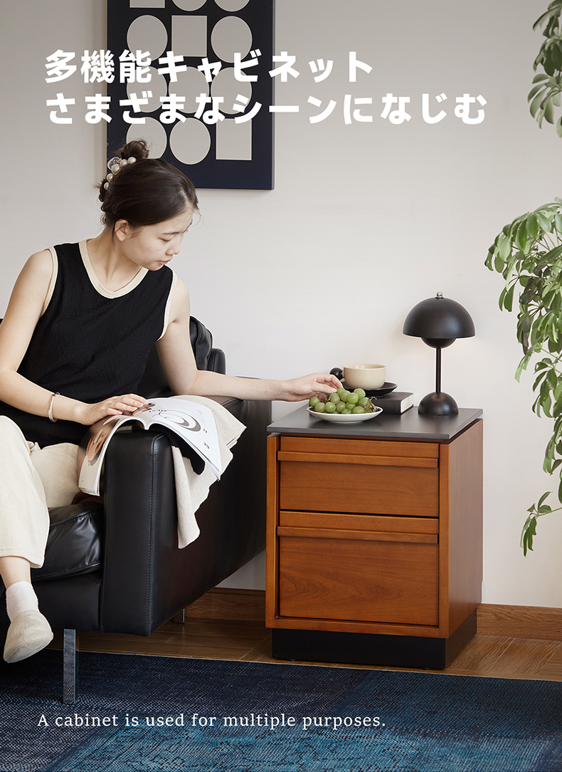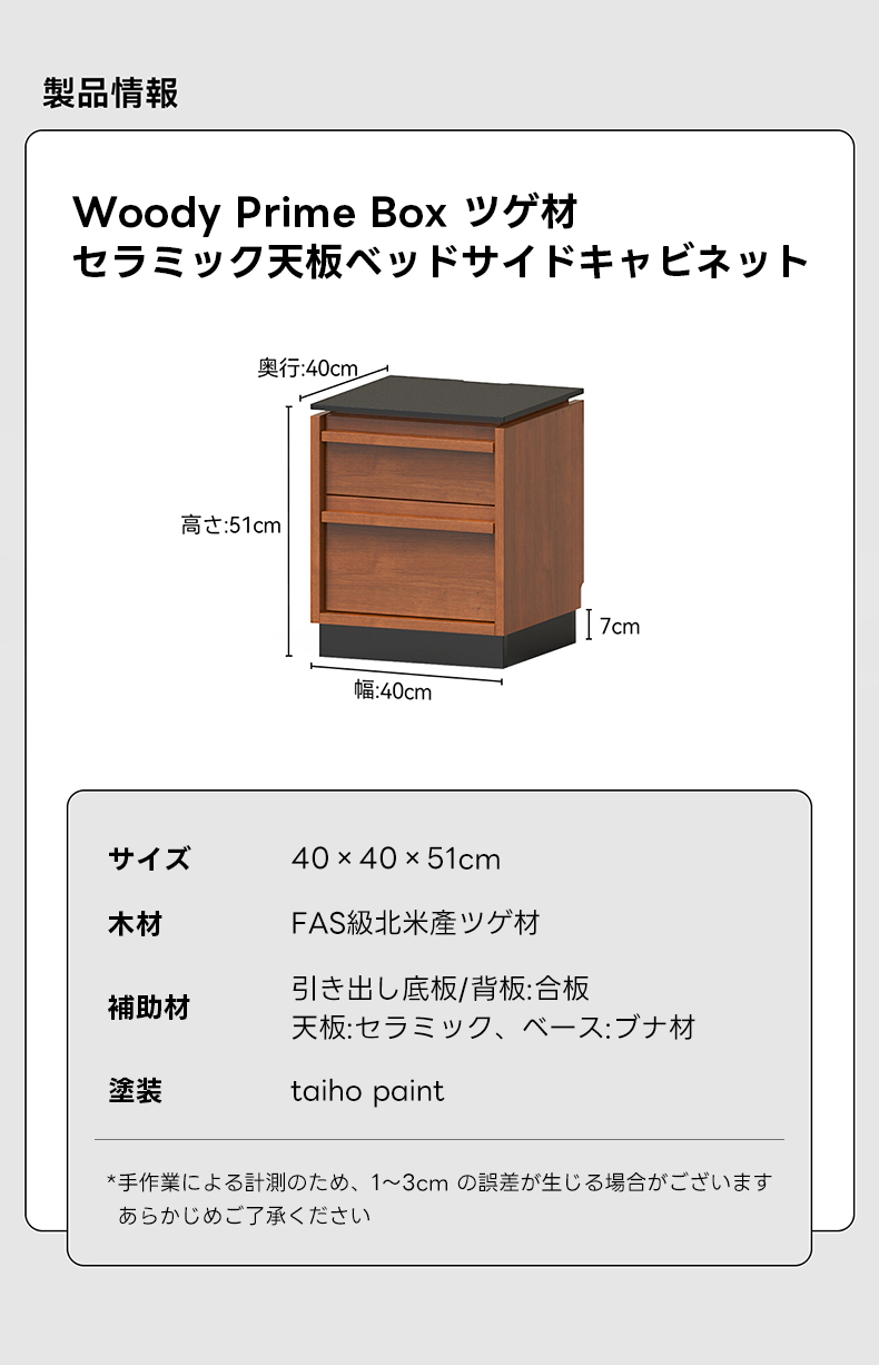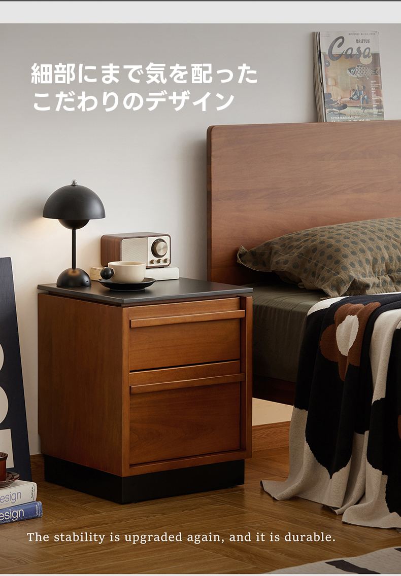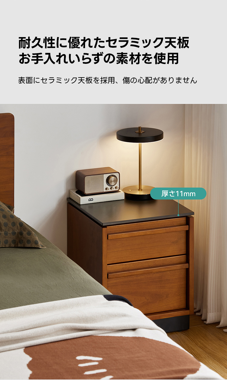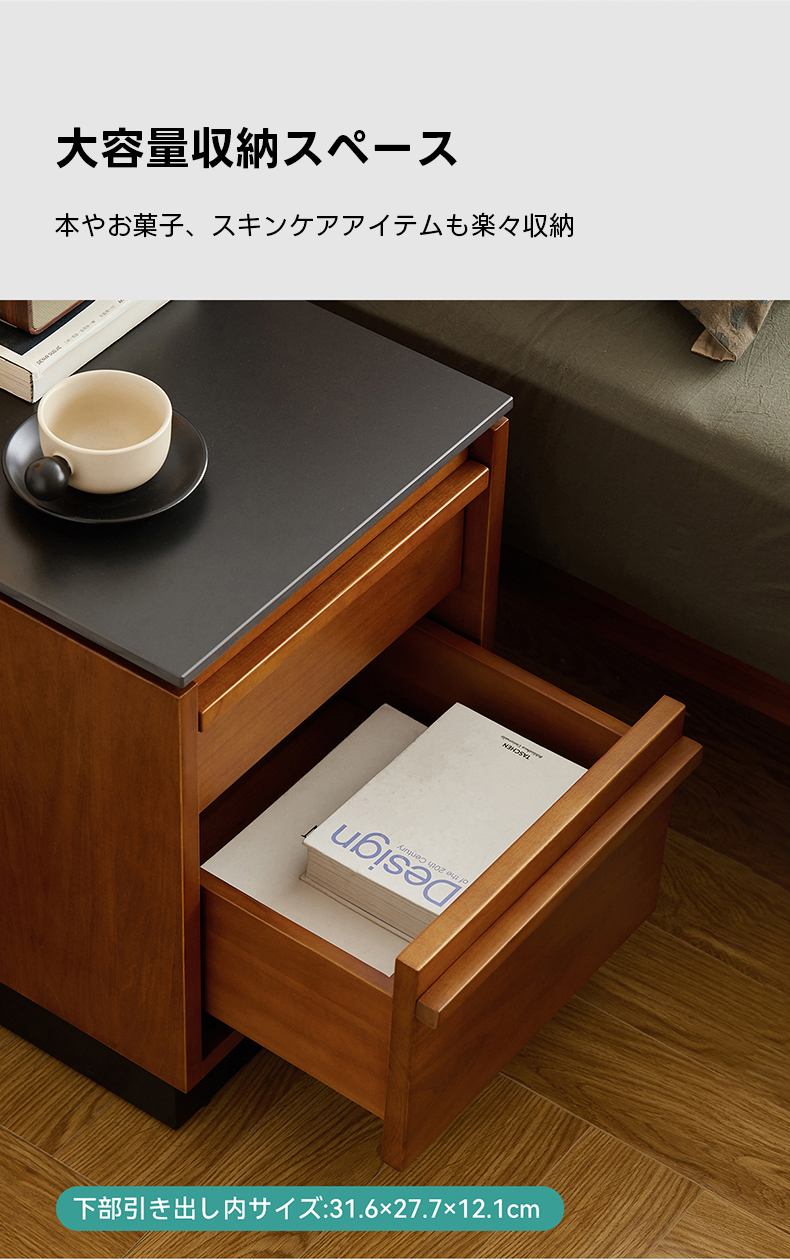 Woody Prime Boxツゲ材 セラミック天板ベッドサイドキャビネット