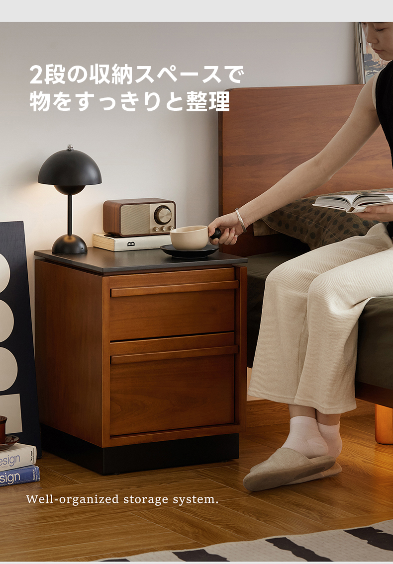 - 【多用途なデザイン】:シンプルで洗練されたデザインは、寝室やリビングにぴったりです。2段の引き出しにより、ジュエリーや本、スキンケアアイテムをすっきり収納できます。