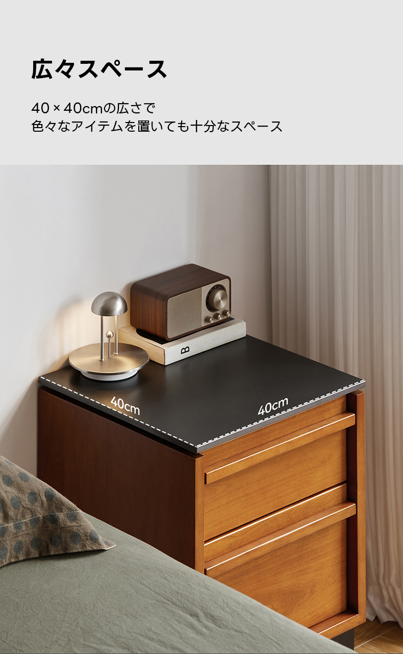 - 【使いやすさと機能性】:金属ガイドレールで引き出しはスムーズに開閉し、静音設計で快適な使用感を提供します。ケーブル用スロットがあり、充電ケーブルをすっきりと収納できます。