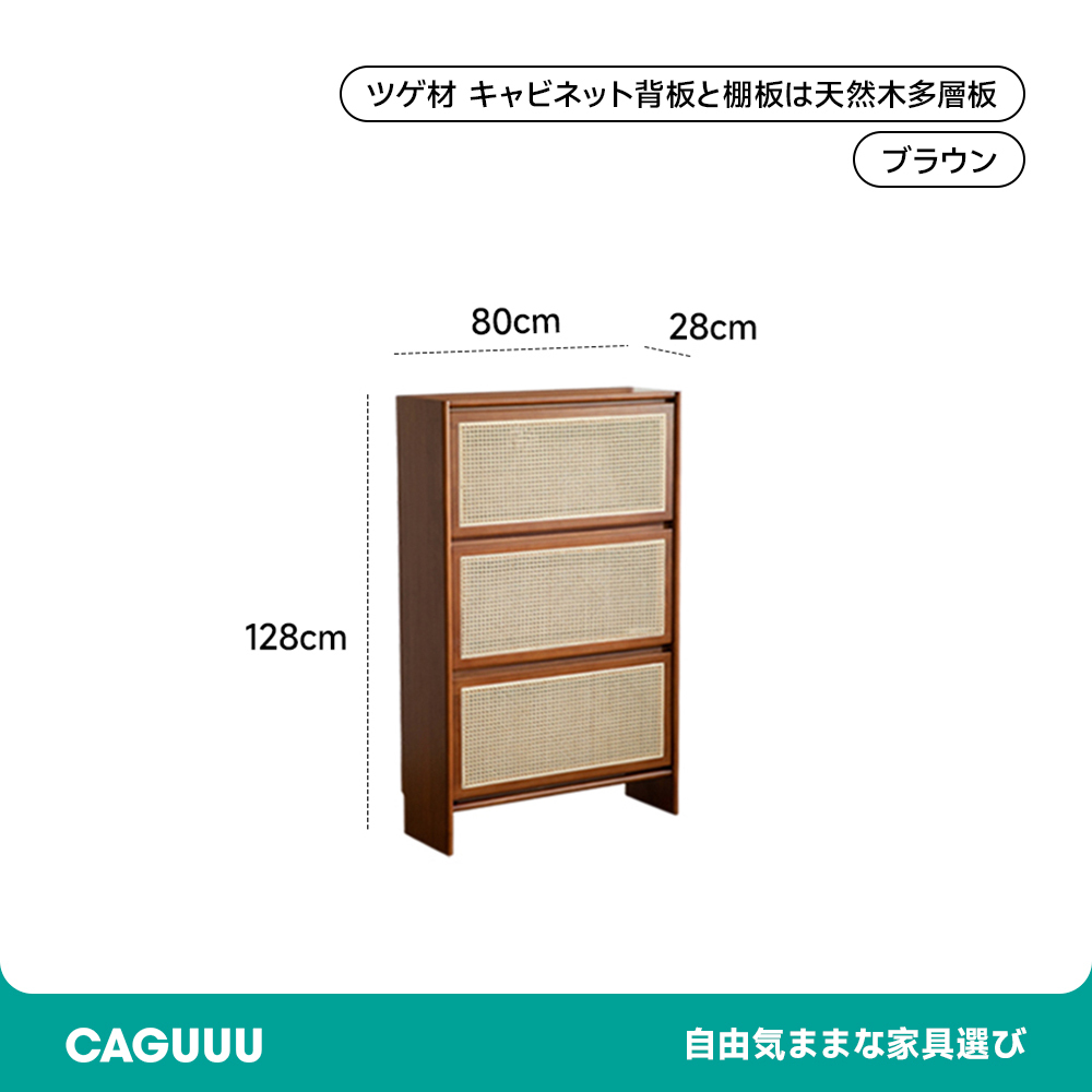 - 【高級感あふれる素材とデザイン】このシューズキャビネットは、FAS級のツゲ材を使用し、職人による手作業の多層塗装が施されています。これにより、耐摩耗性と汚れに強い特性を持ち、四季を通じて快適に使用できます。また、ナチュラルなベージュのラタン調デザインは、ヴィンテージ感を醸し出し、どんなインテリアにもマッチします。
