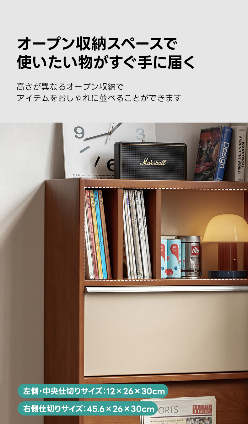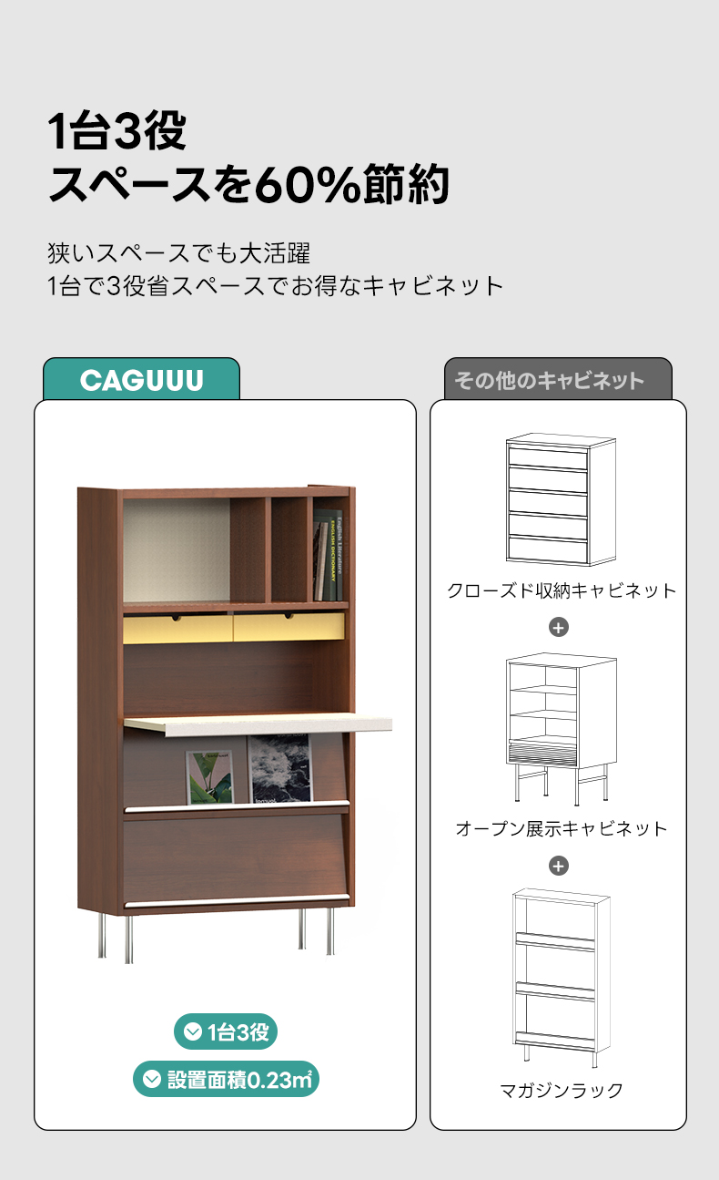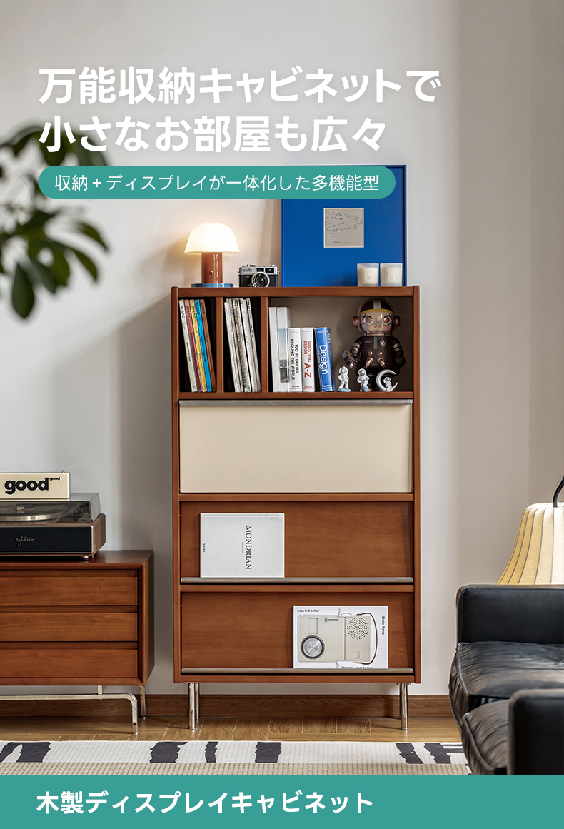 - 【多機能設計で効率的な収納】このキャビネットは、収納、ディスプレイ、マガジンラックの3つの機能を1台に統合しています。省スペースでありながら、165Lの大容量収納を実現し、リビングや寝室での整理整頓に最適です。