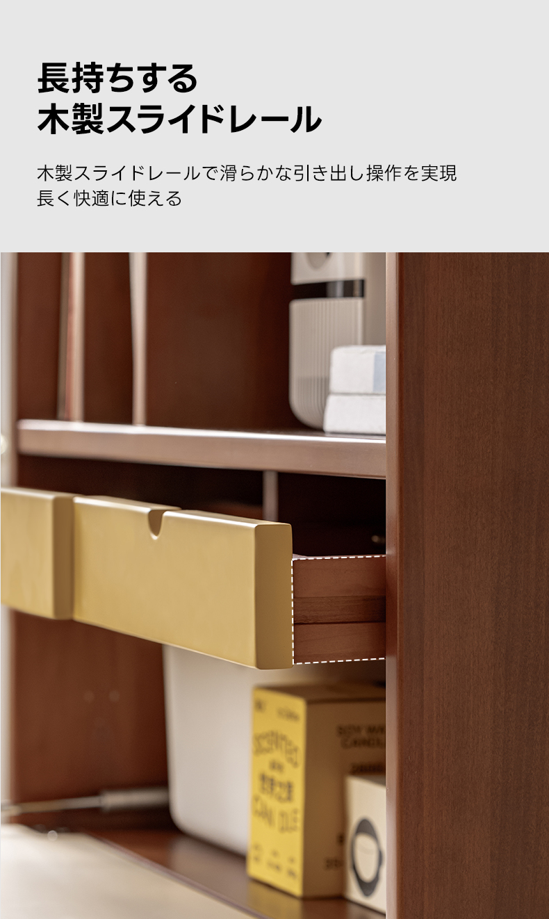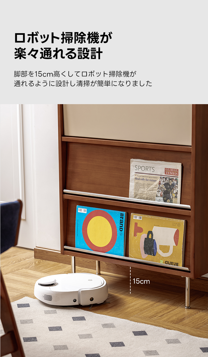 - 【安全性と使いやすさを両立】転倒防止装置を備え、安心してご使用いただけます。また、木製スライドレールで滑らかな引き出し操作が可能です。ロボット掃除機が通れるように設計されており、日々の掃除が簡単です。