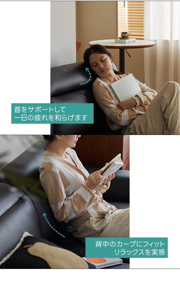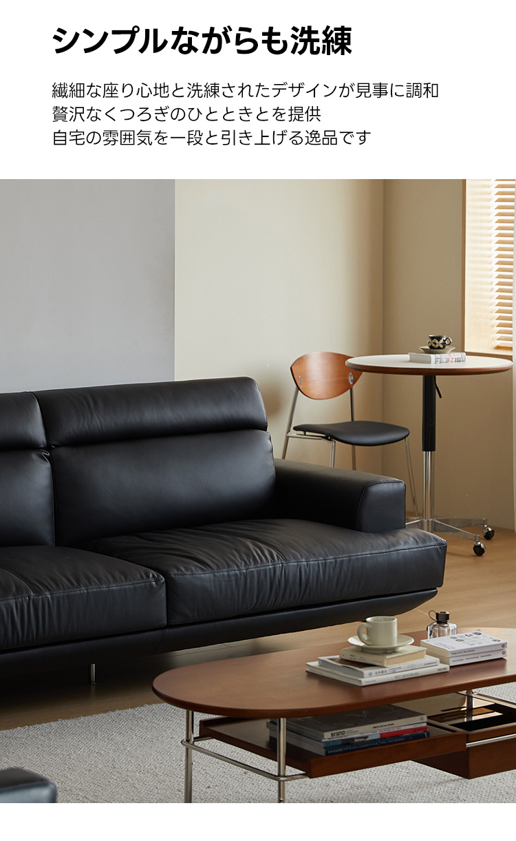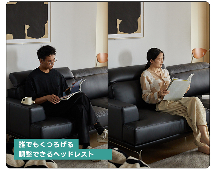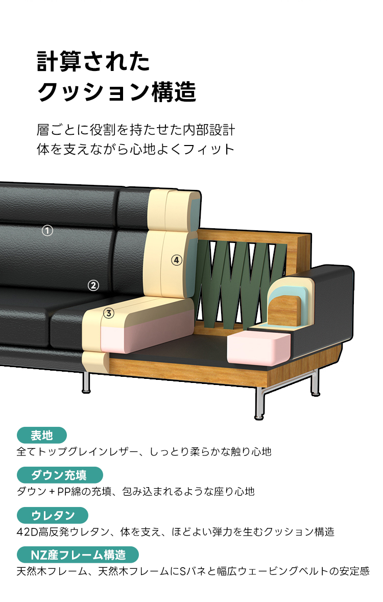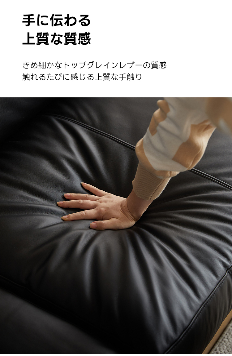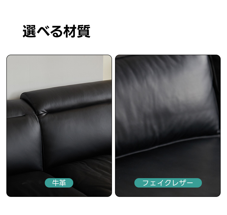 - 【高品質な素材とデザイン】:牛革またはフェイクレザーから選べる上質な素材を使用し、どちらも肌触りが良く、耐久性に優れています。ニュージーランド産パイン材の強固なフレームが長く安心してお使いいただける耐久性を提供します。