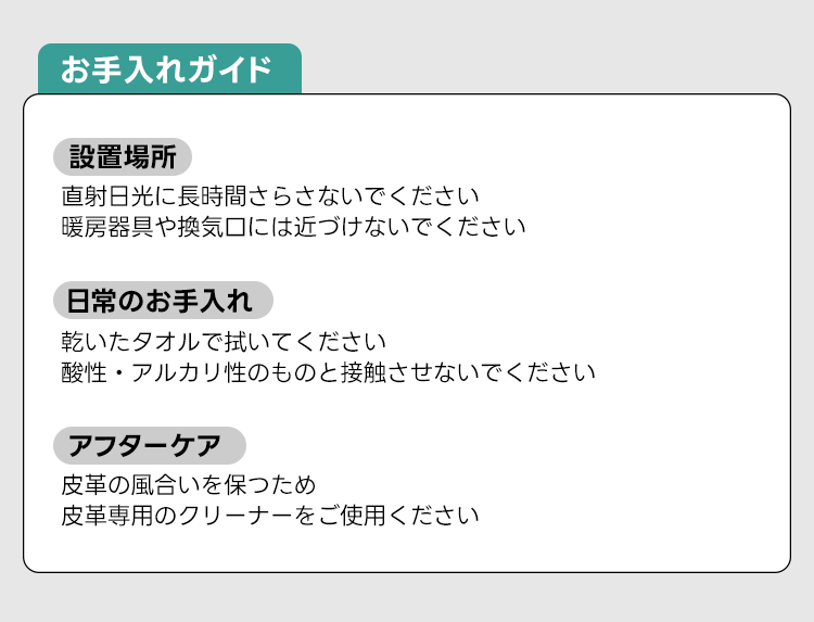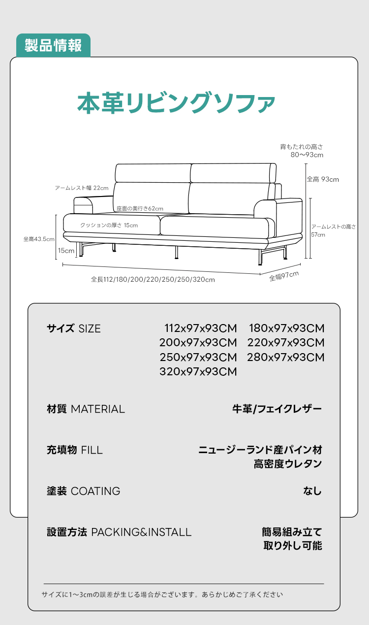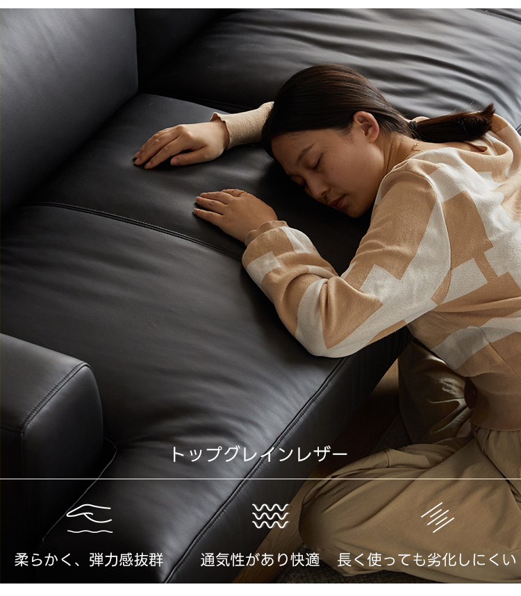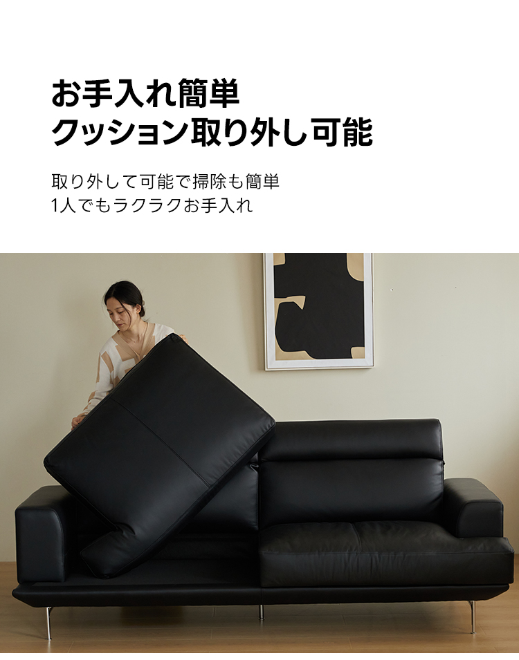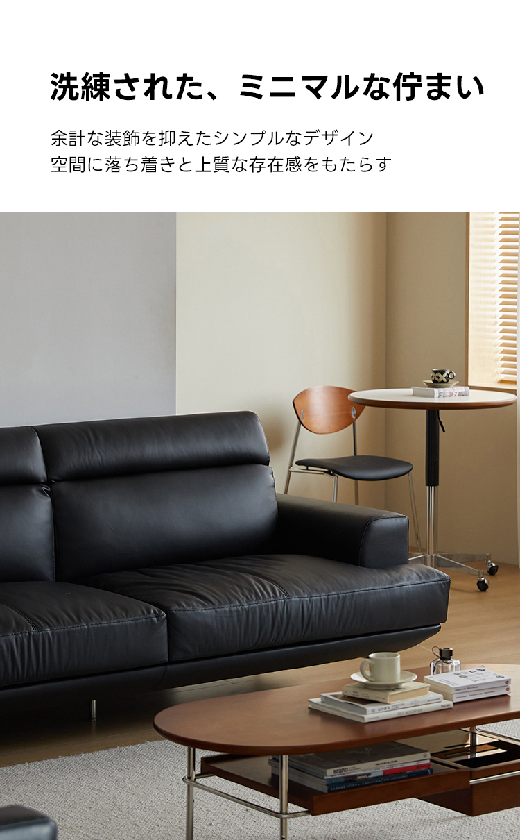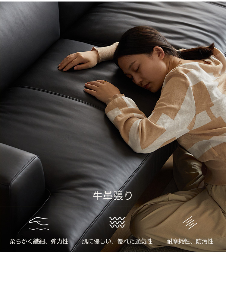 - 【高品質な素材とデザイン】:牛革またはフェイクレザーから選べる上質な素材を使用し、どちらも肌触りが良く、耐久性に優れています。ニュージーランド産パイン材の強固なフレームが長く安心してお使いいただける耐久性を提供します。