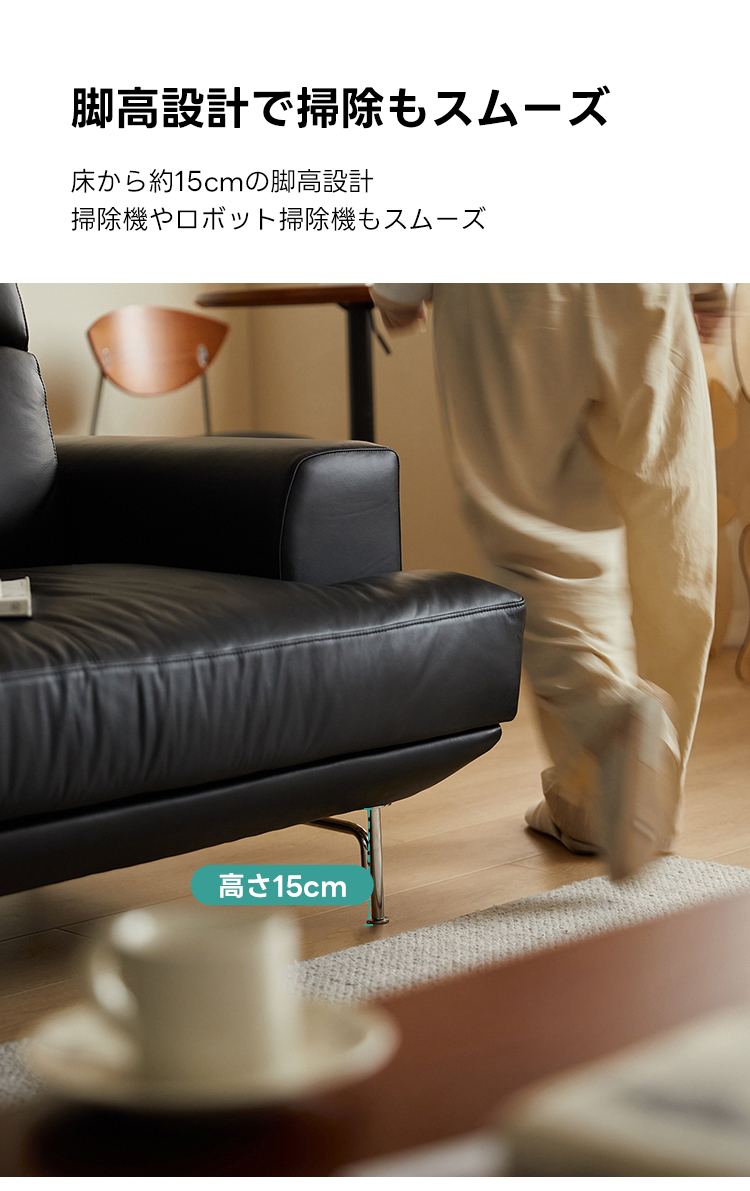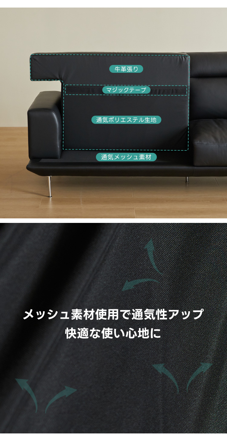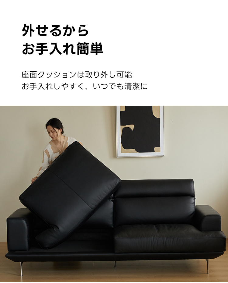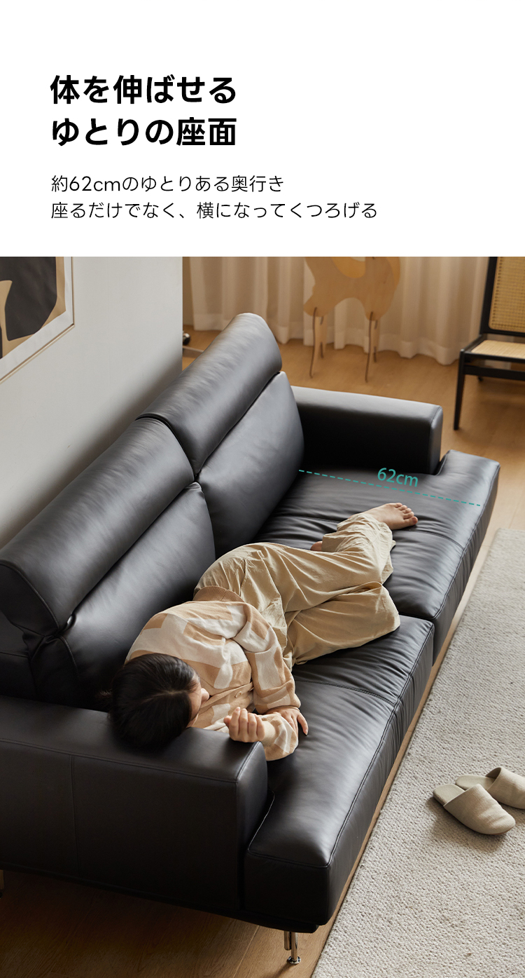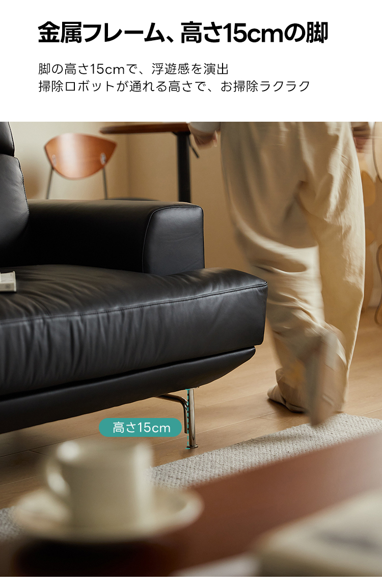 - 【高品質な素材とデザイン】:牛革またはフェイクレザーから選べる上質な素材を使用し、どちらも肌触りが良く、耐久性に優れています。ニュージーランド産パイン材の強固なフレームが長く安心してお使いいただける耐久性を提供します。