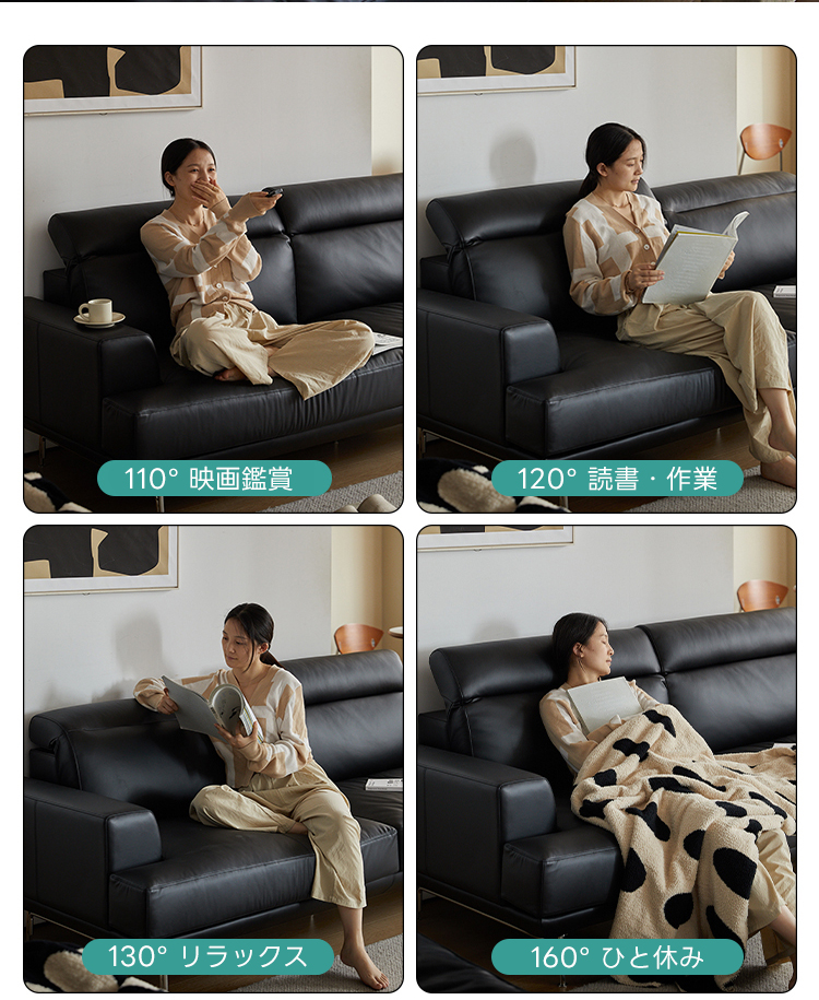 背もたれ5段階調整レザーリビングソファ【カスタマイズ可】
