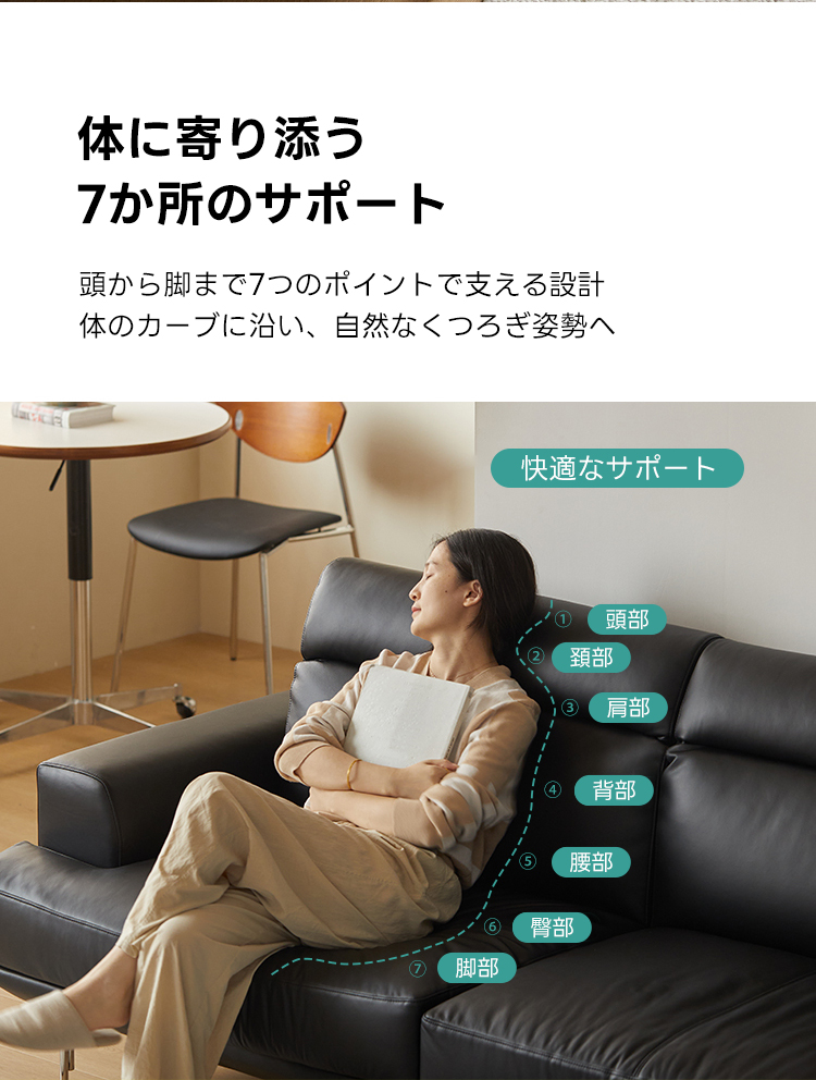 - 【快適な座り心地とサポート】:7段サポートシステムにより、頭から足まで全身をしっかり支え、リラックスした姿勢を保てます。取り外し可能なクッションでメンテナンスも簡単、日常の掃除も楽々です。