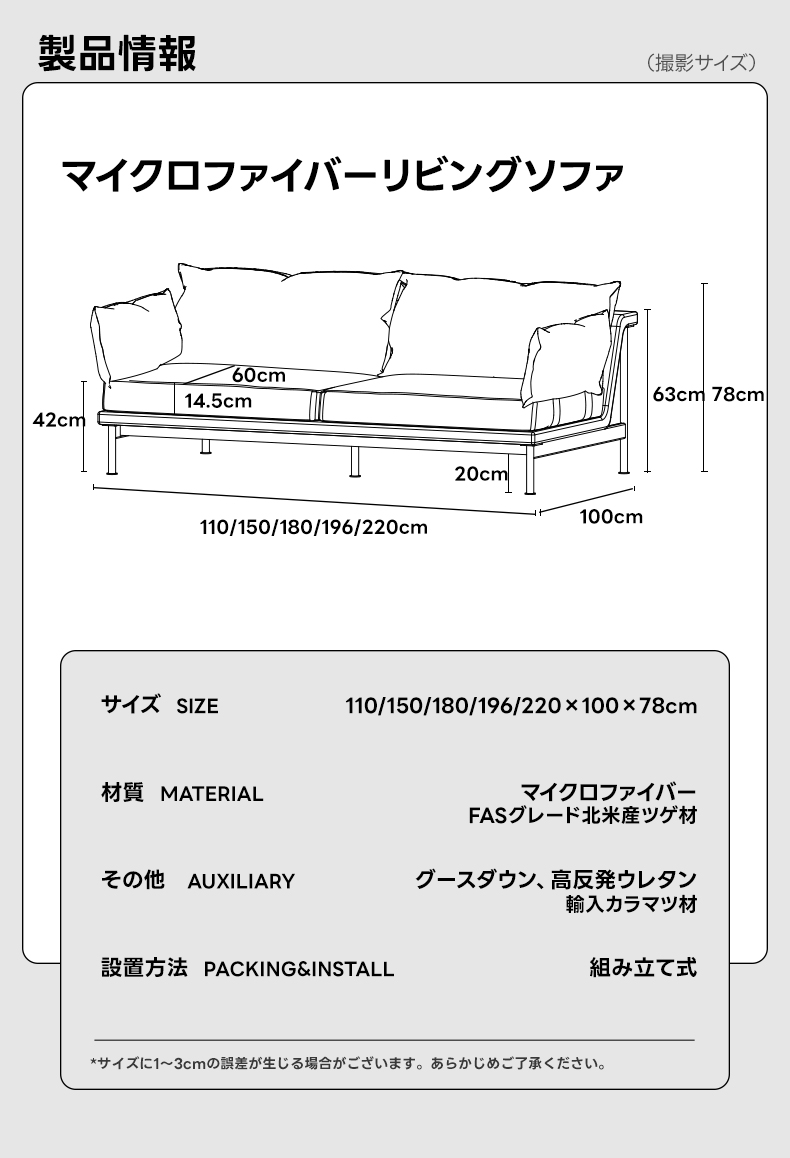 - 【カスタマイズ可能なデザイン】このマイクロファイバーリビングソファは、サイズやカラーを自由に選べるカスタマイズ機能を備えています。あなたのライフスタイルやインテリアにぴったりのソファを作り上げることができます。