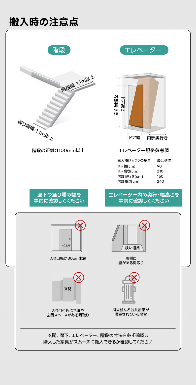 ※搬入不可等の理由による注文キャンセルは、ご返送にかかる費用をお客様にご請求いたします。ご注文前に大型家具の搬入方法をご確認ください。