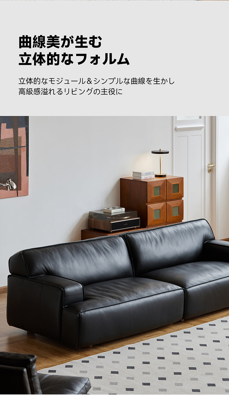 - 【高品質レザー使用】100%フルレザーを使用したこのソファは、一般的なソファの2倍のレザーを使用。トップグレインレザーは柔らかく耐久性に優れ、長時間座っても蒸れにくい特性があります。高級感あふれるブラックレザーがどんなリビングにもシックで上品なイタリアンスタイルを演出します。