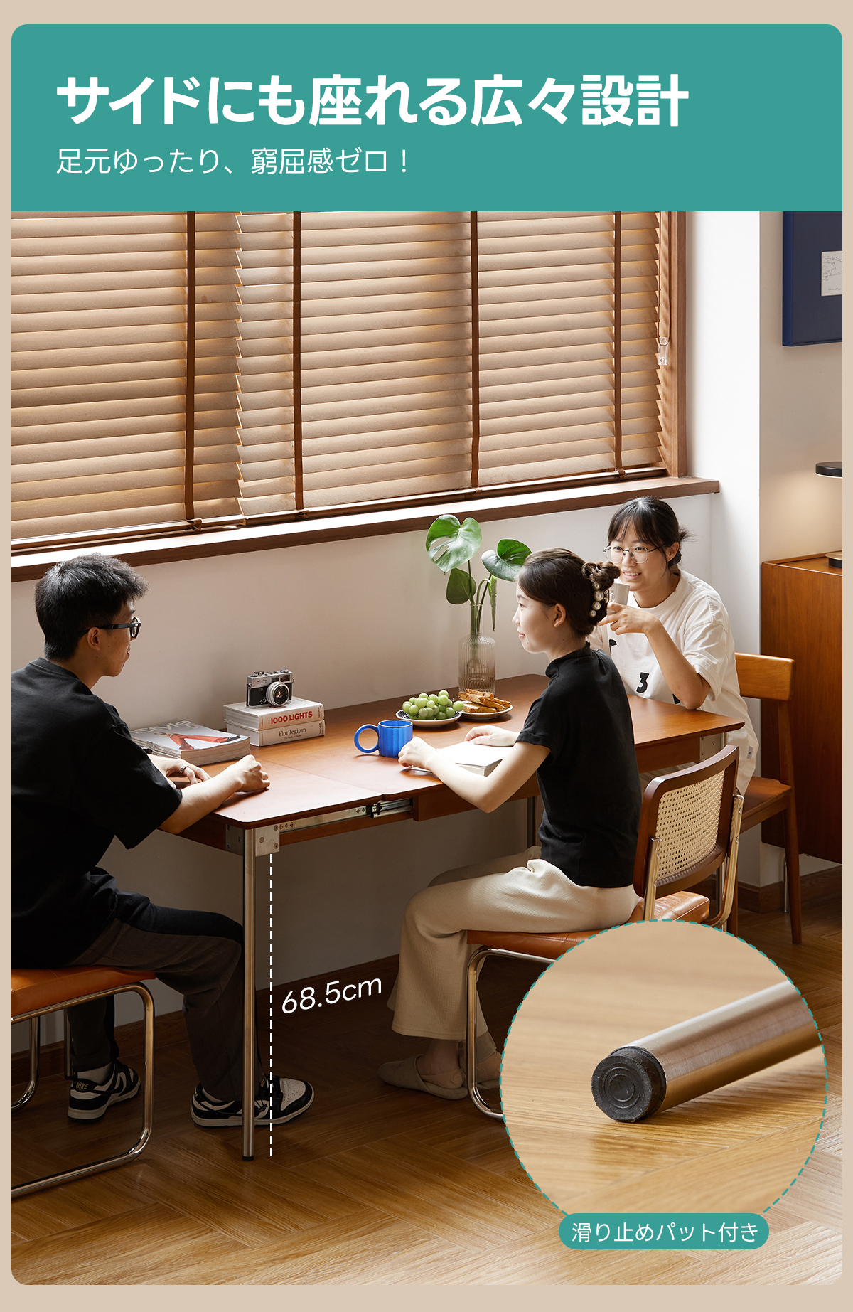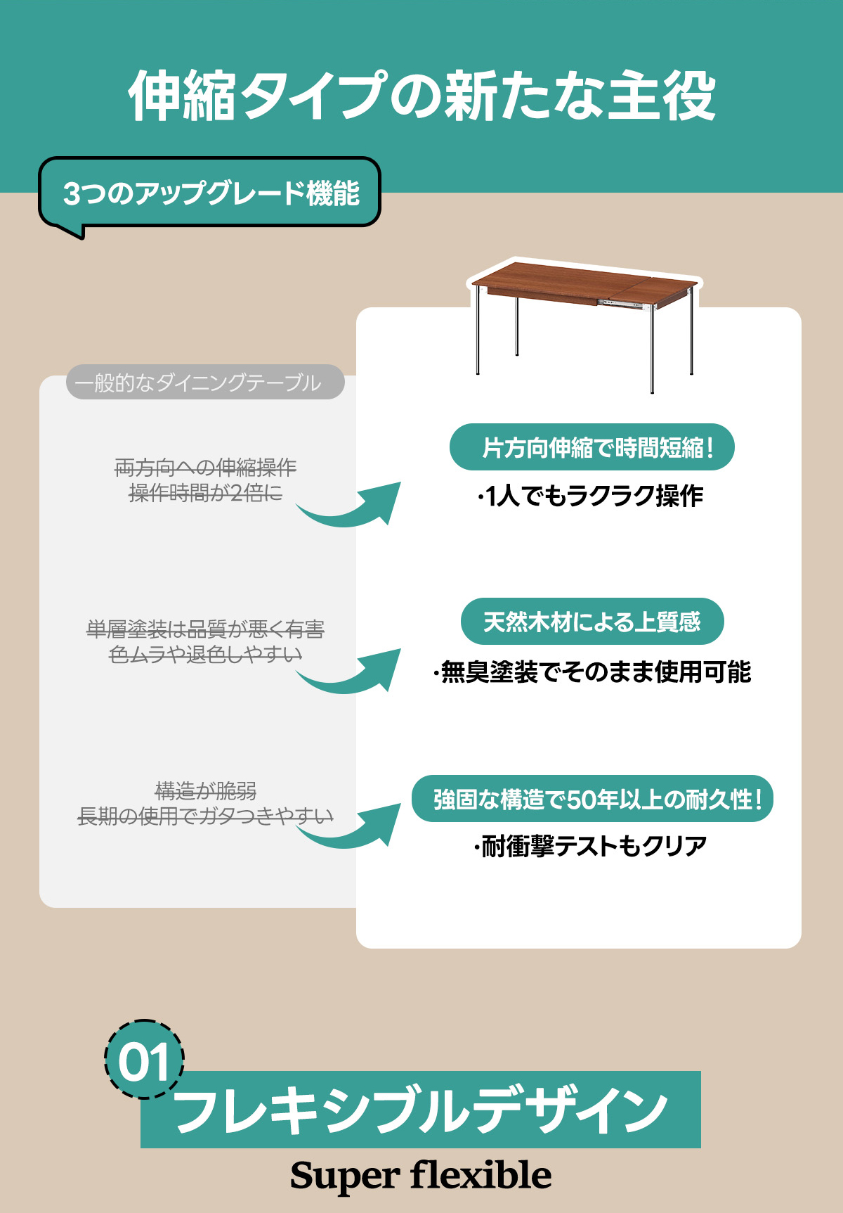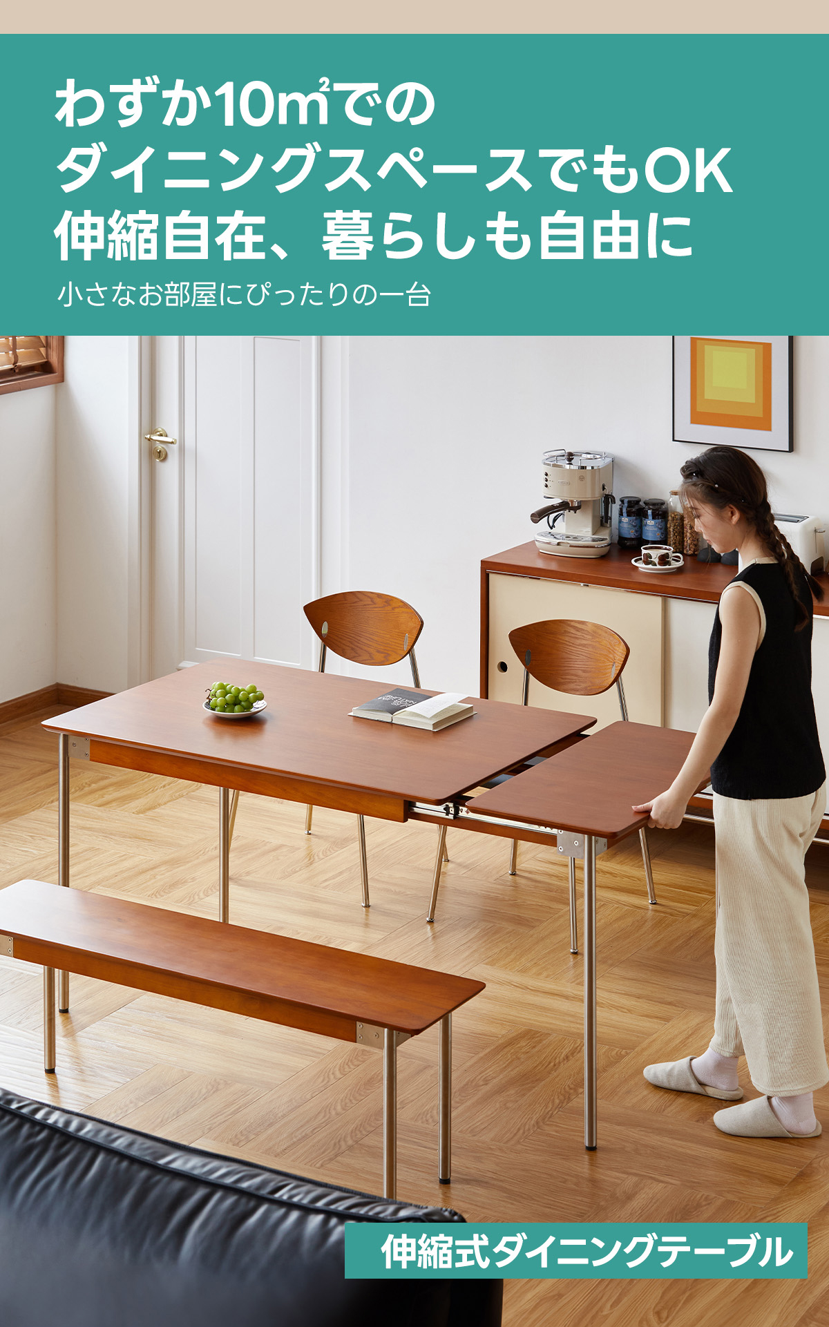 - 【優れた機能性】この伸縮式ダイニングテーブルは、120cmから160cm、140cmから180cmまで自由にサイズを調整可能。コンパクトなスペースでも広々と使用でき、カップルやファミリーに最適です。