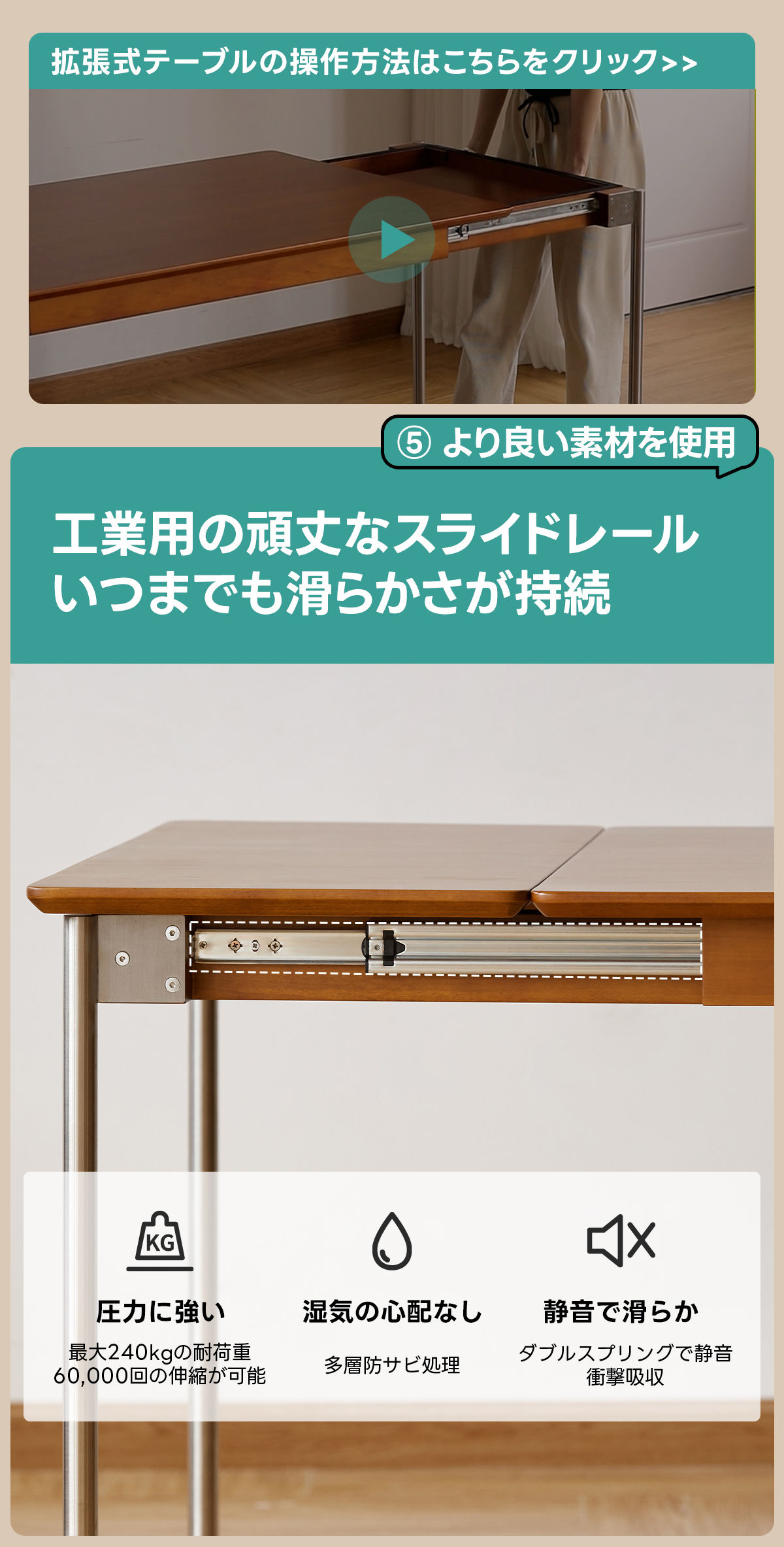 - 【快適な使用体験】片手で簡単に操作できるスライドテーブルは、女性でも楽に扱えます。液体を弾く特性があり、汚れがつきにくく、簡単に拭き取ることができます。