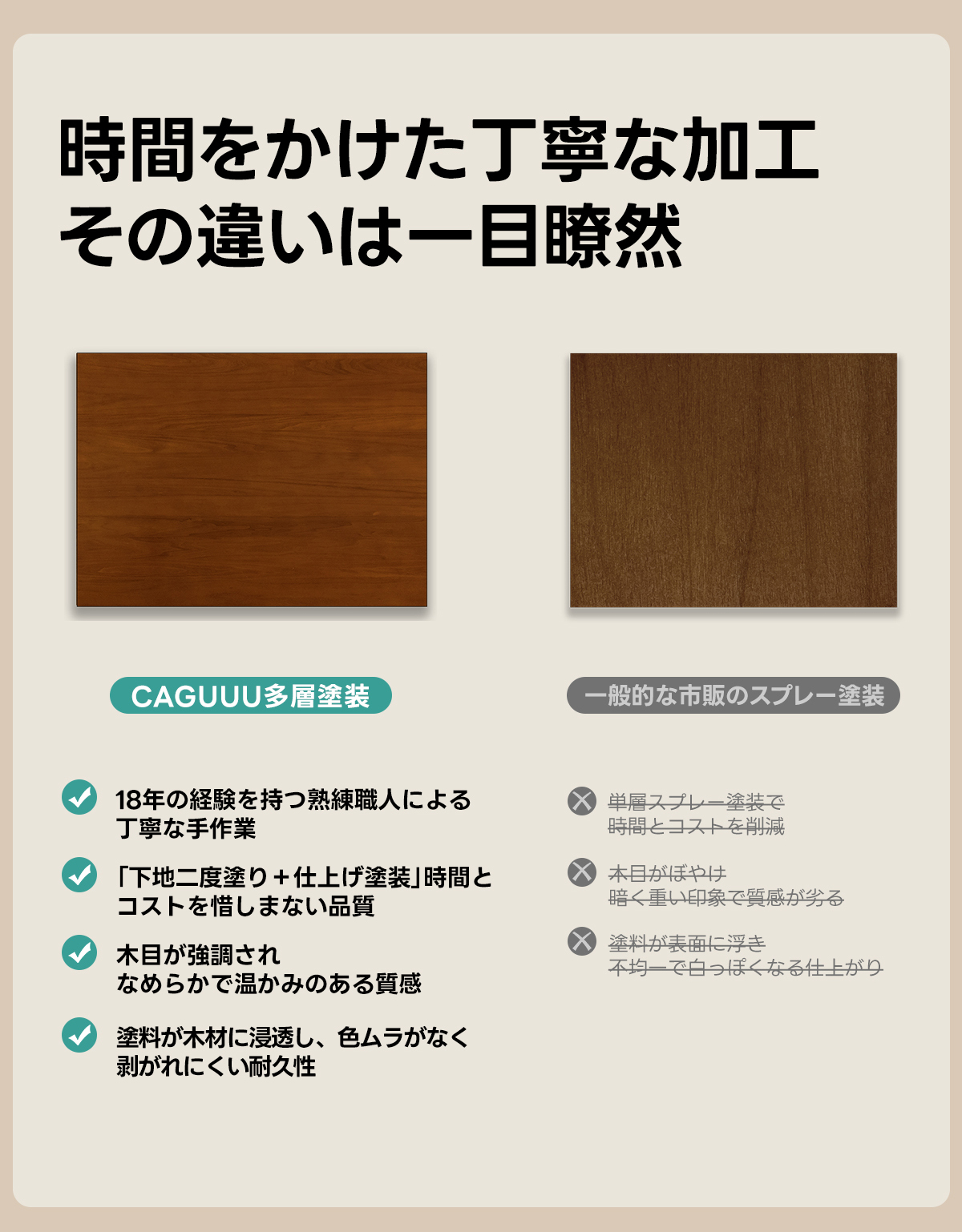 - 【高品質な素材とデザイン】FAS級北米産ツゲ材を使用し、自然の美しさと耐久性を兼ね備えています。ステンレス製の脚部は安定感を提供し、長期間の使用でもしっかりと支えます。