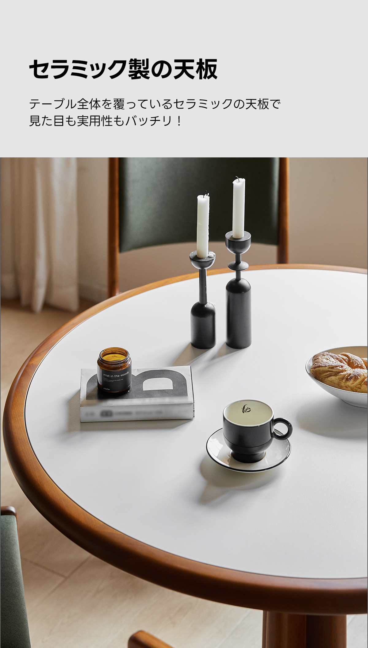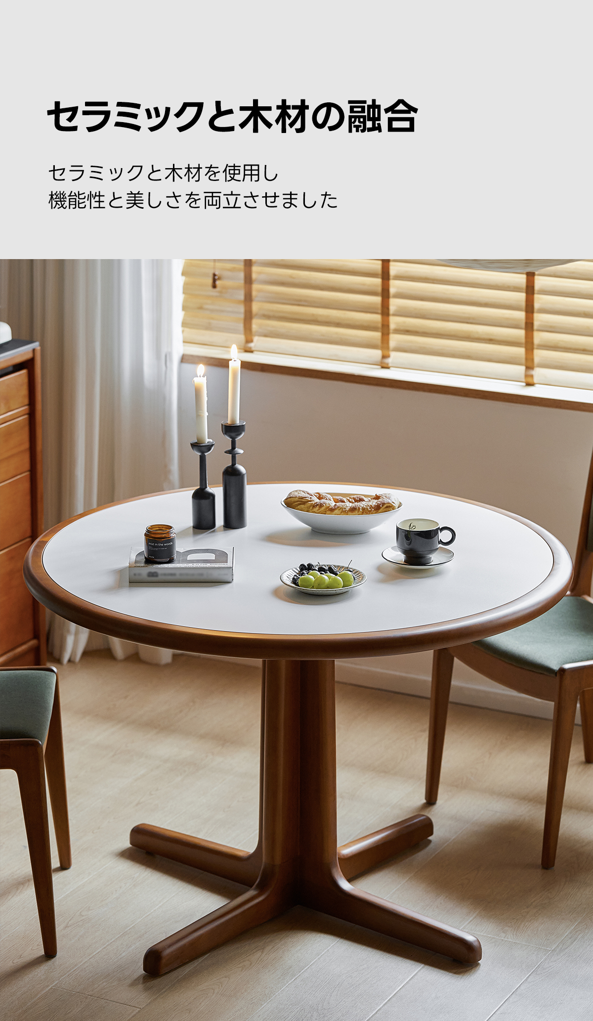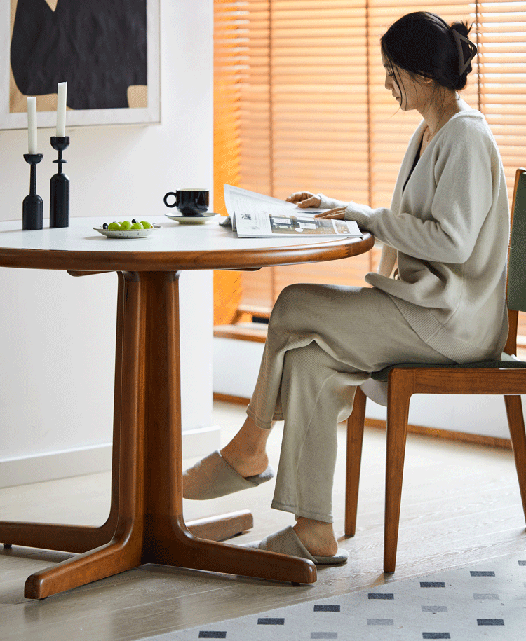 Woody Prime Boxツゲ材 セラミック円形ダイニングテーブル