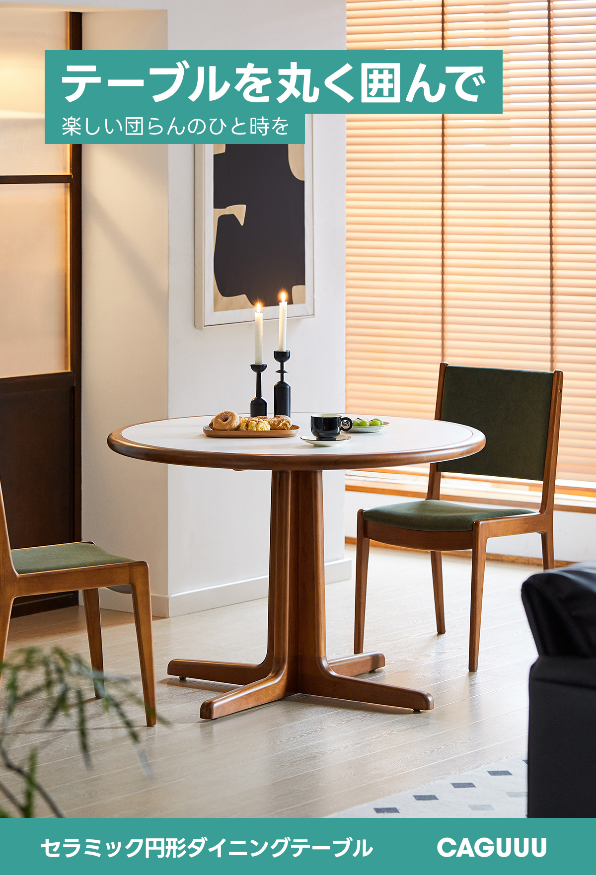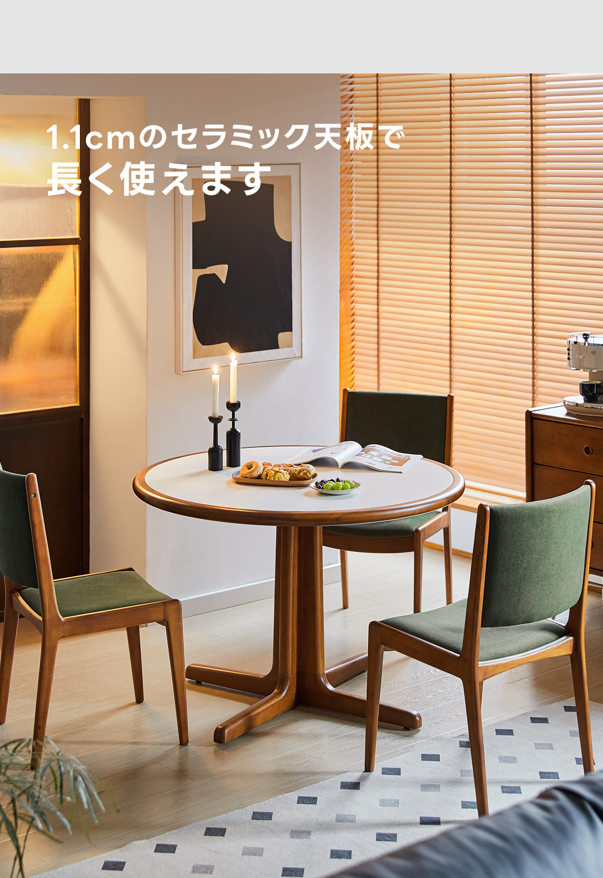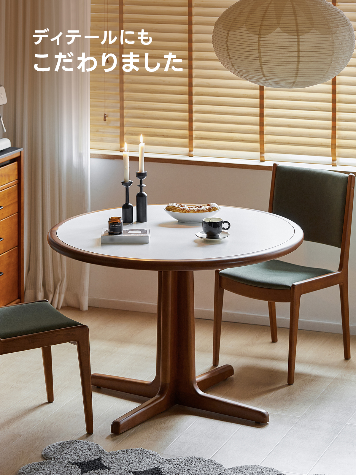 Woody Prime Boxツゲ材 セラミック円形ダイニングテーブル