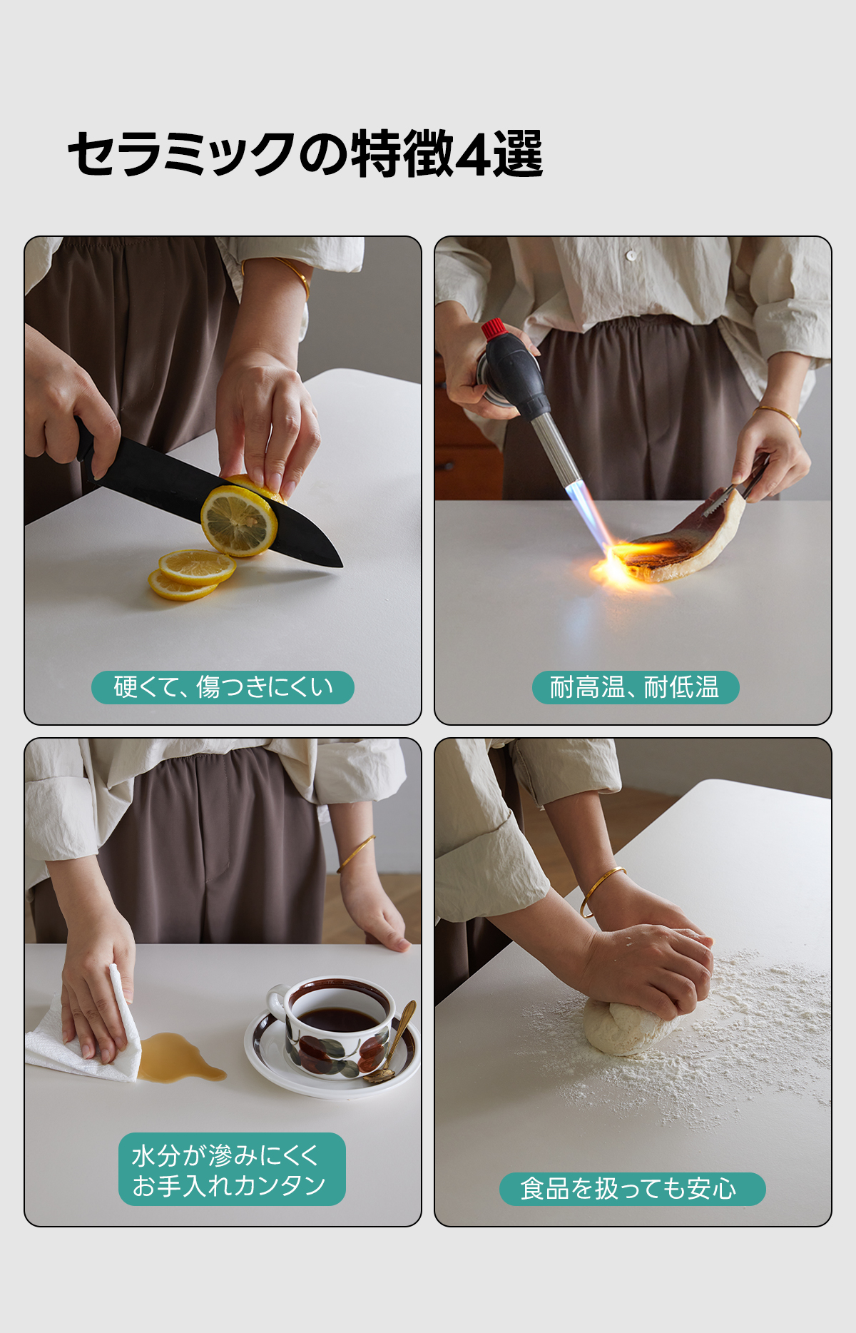 - 【高級素材と耐久性】:FASグレードの北米産ツゲ材を使用し、セラミック天板は傷つきにくく耐熱性に優れています。長期間使用しても色褪せず、美しさを保ちます。