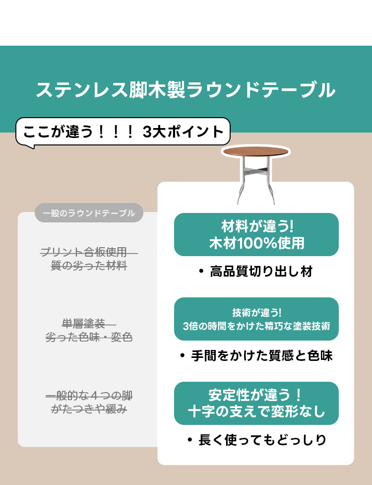Woody Prime Boxツゲ材 ステンレス脚木製ラウンドテーブル