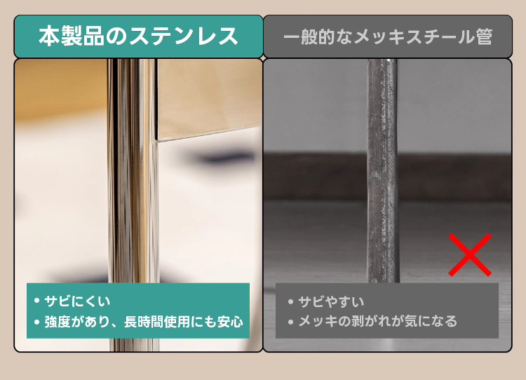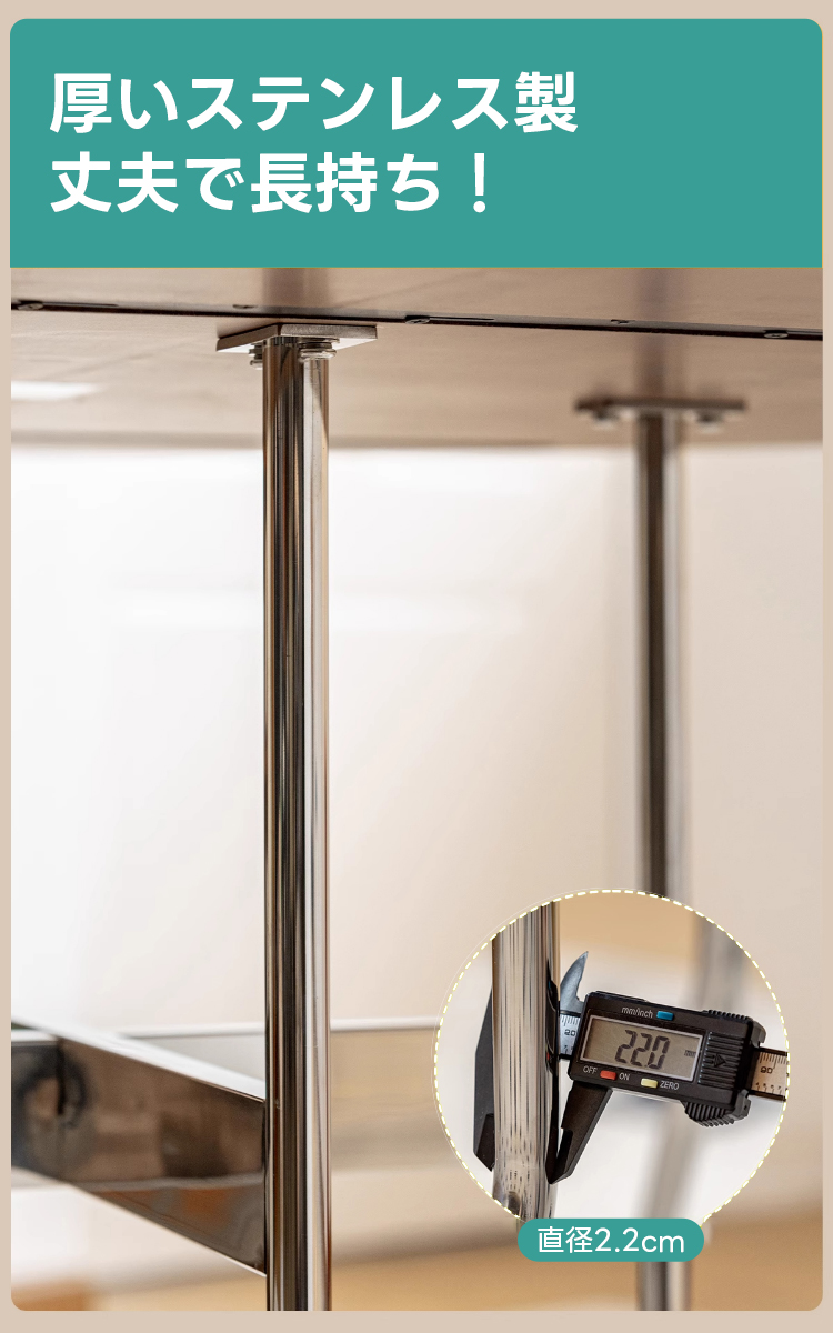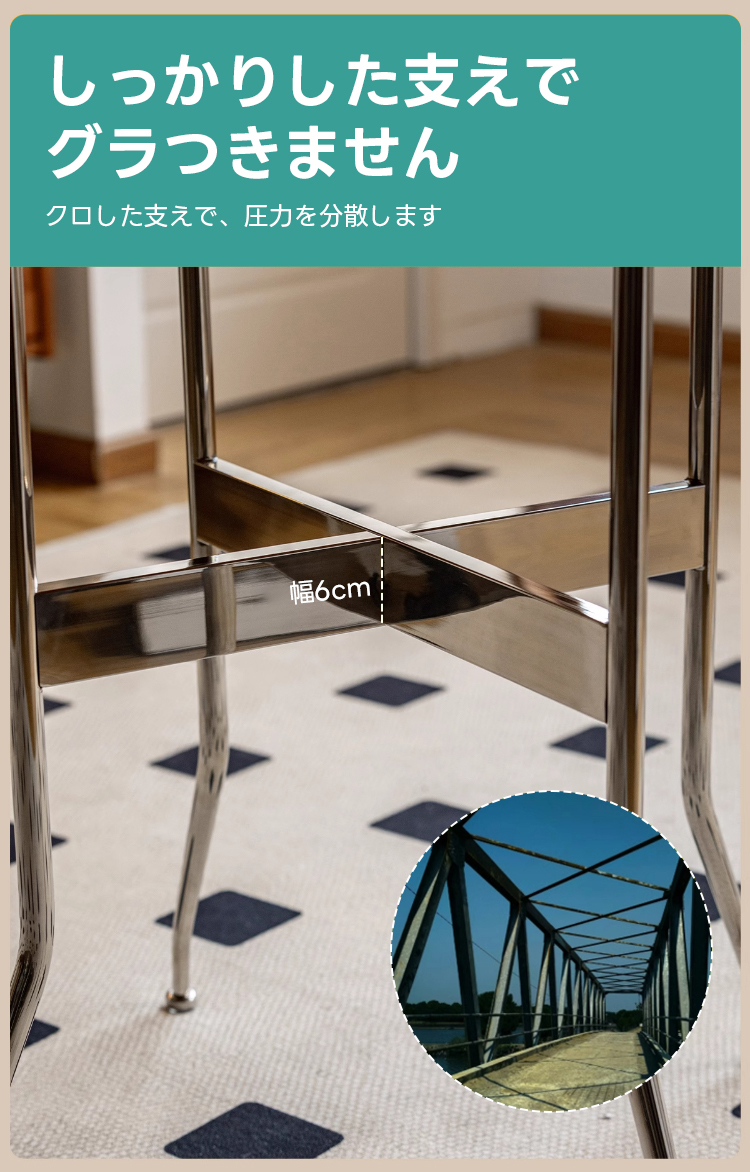 - 【耐久性と安定性の両立】:ステンレス製の脚はクロスサポートにより、長期間使用しても変形しにくく、しっかりとした安定感を提供します。精密な塗装技術により、液体がこぼれても簡単に拭き取れます。