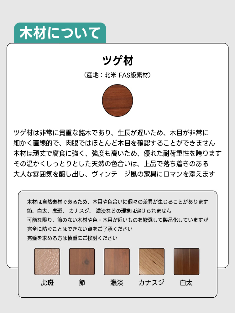 - 【高品質な素材とデザイン】:本製品は、FASグレードの北米産ツゲ材を100%使用し、ヴィンテージでナチュラルなデザインが特徴です。耐久性と美しさを兼ね備えたこのテーブルは、どんなインテリアにもマッチします。