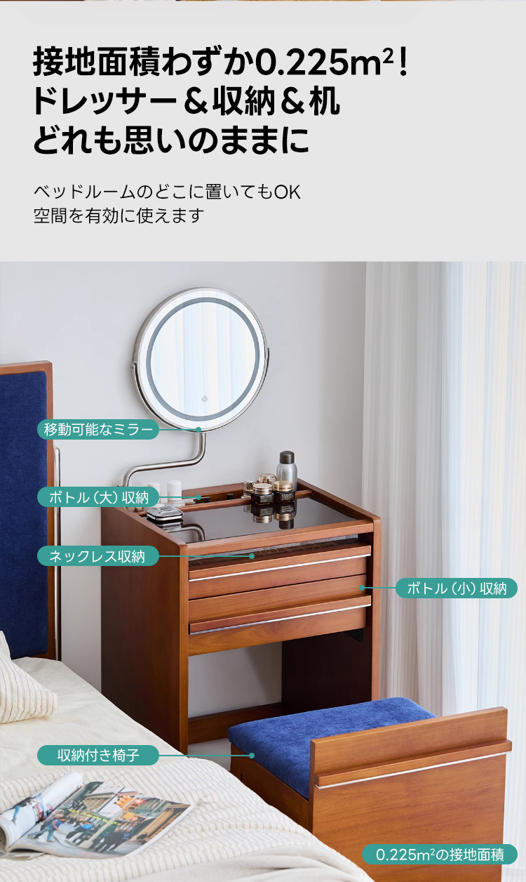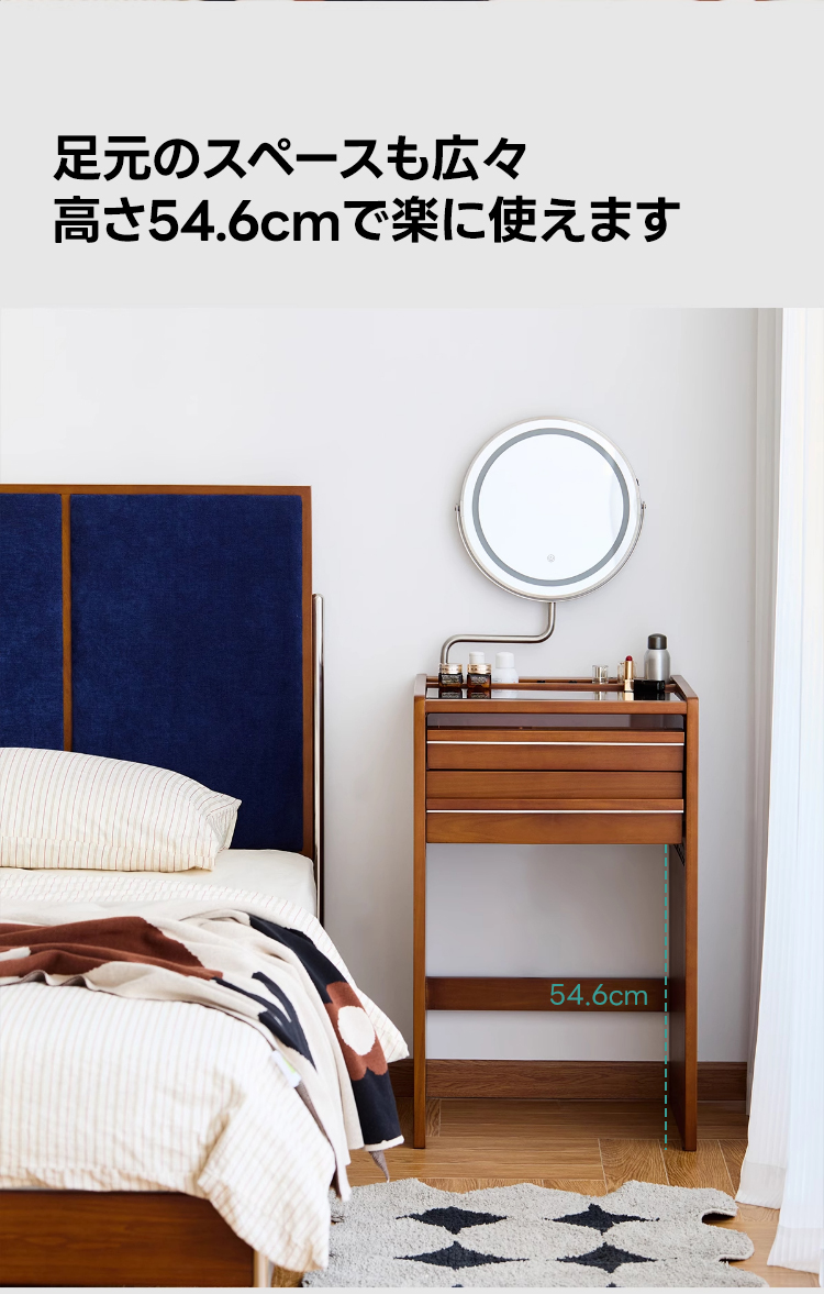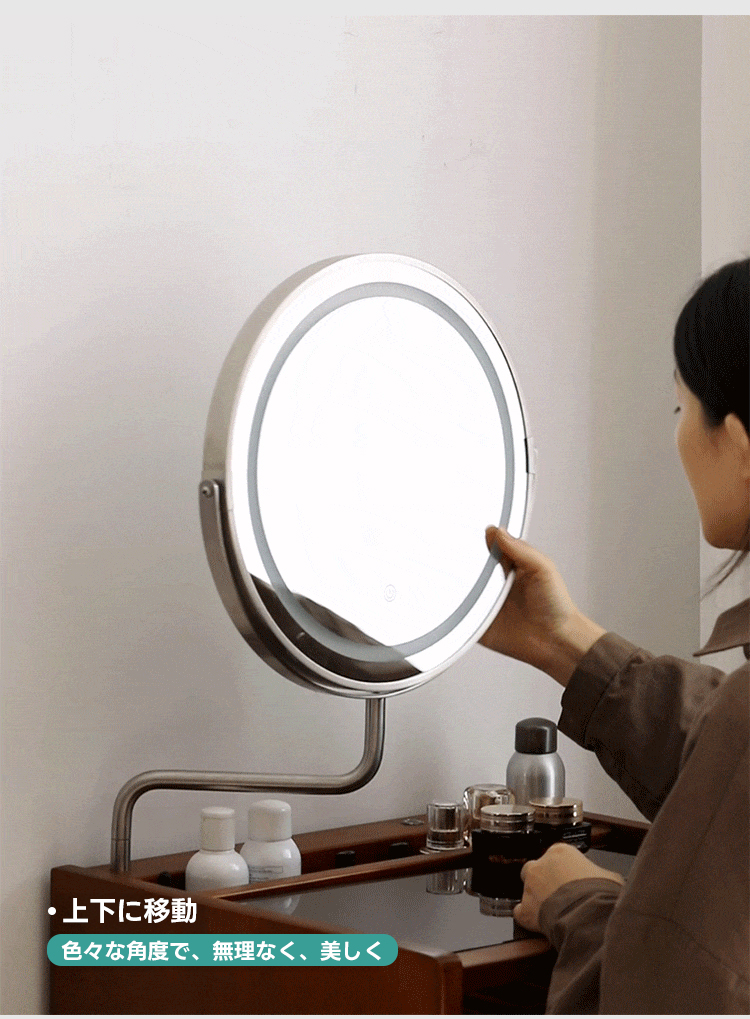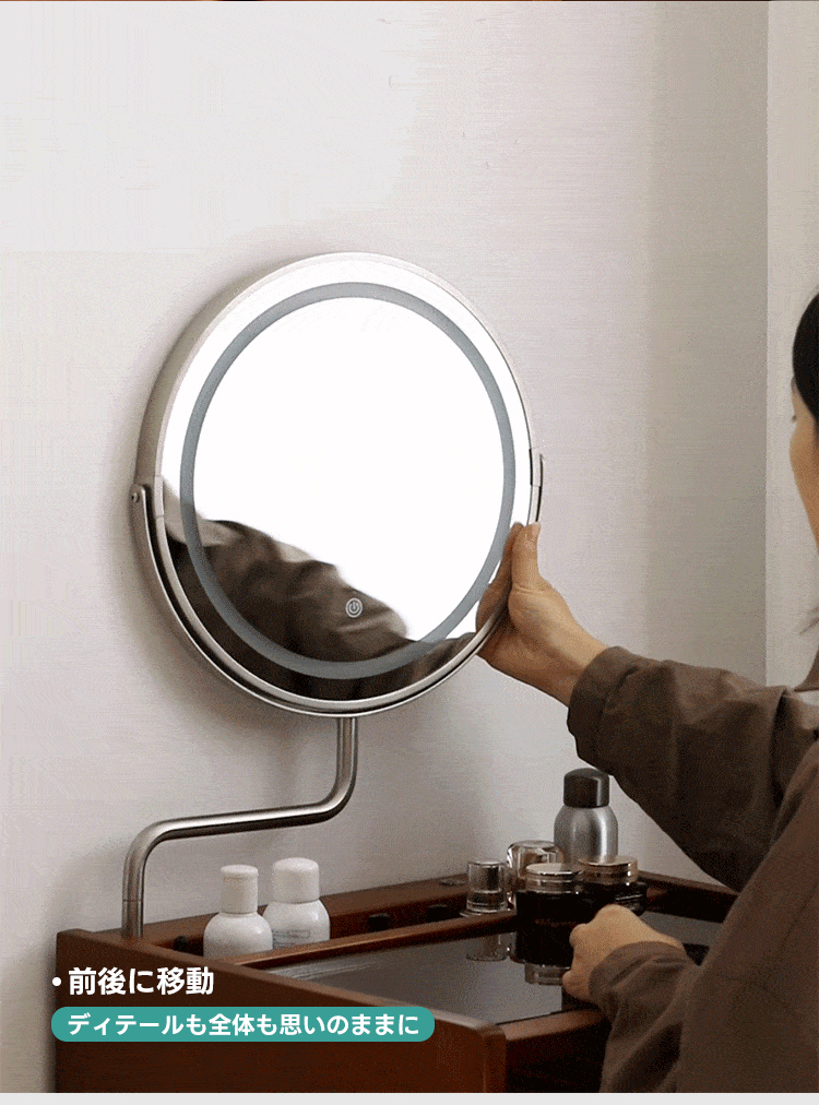 - 【多機能ミラー付きでメイクアップが快適】:34cmの大きなミラーは、角度調整可能で3色のライトを備えています。暖色、自然光、冷色をタッチパネルで簡単に切り替えられるため、理想的なメイクアップ環境を提供します。