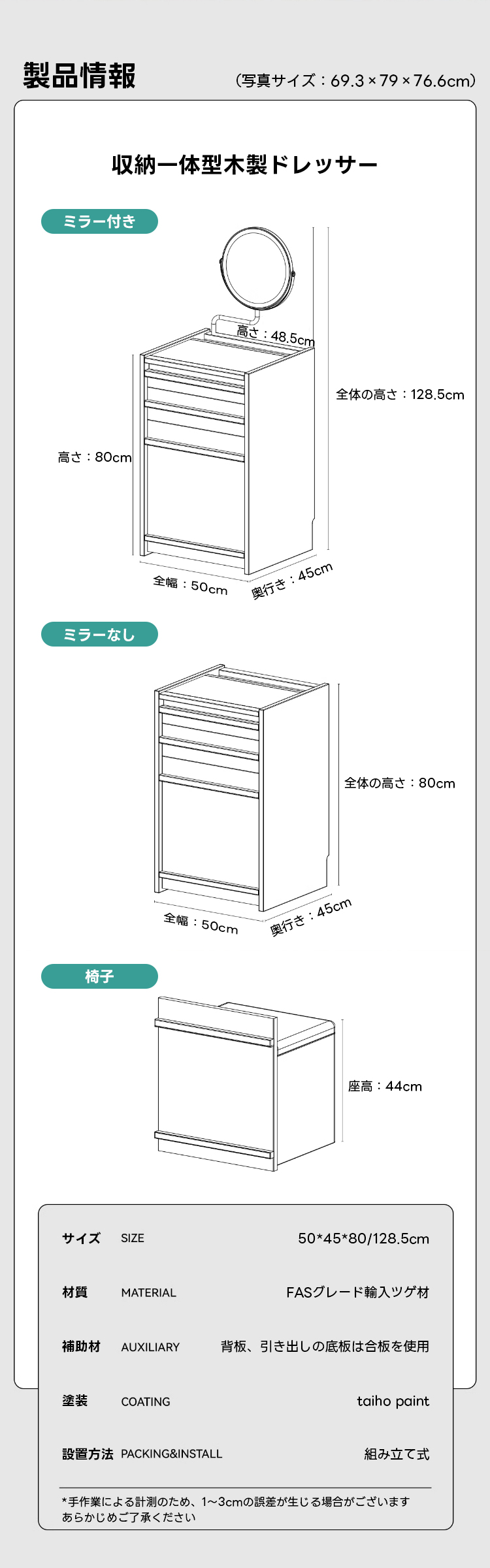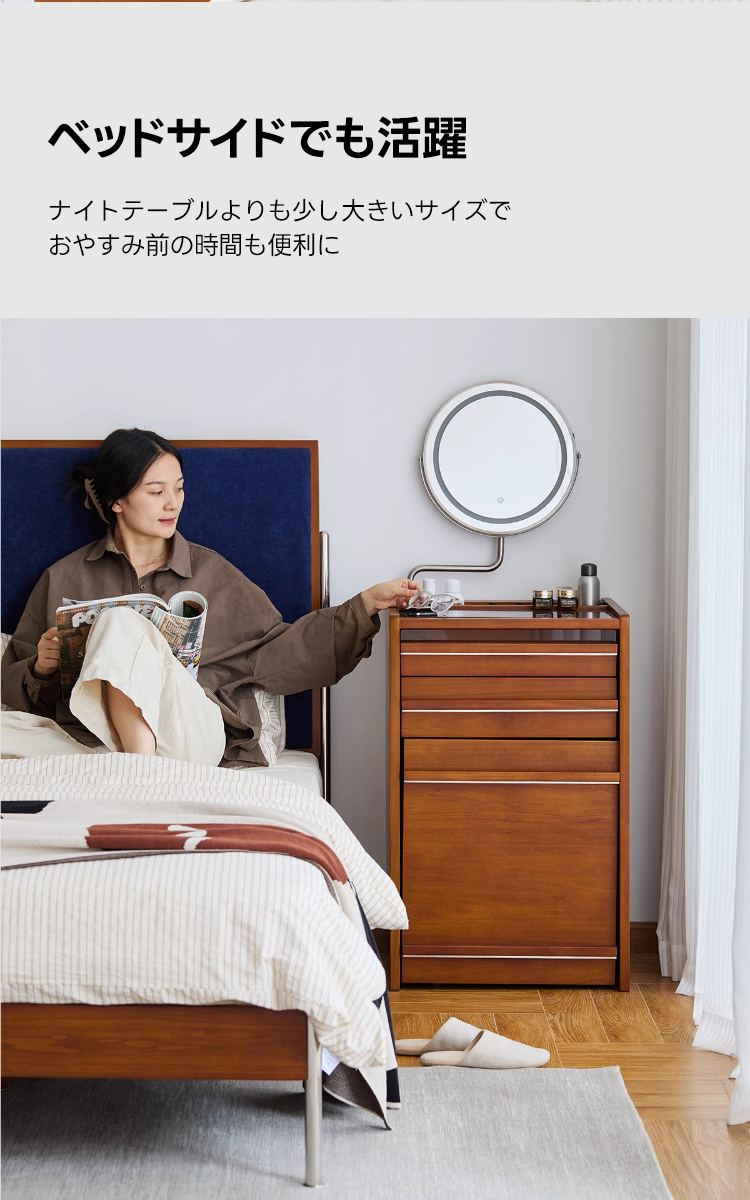 - 【安心のアフターサービス】:高品質な素材と機能性を兼ね備えたドレッサーは、長く安心してお使いいただけます。使用中の問題や疑問にも迅速に対応し、安心してご利用いただけます。