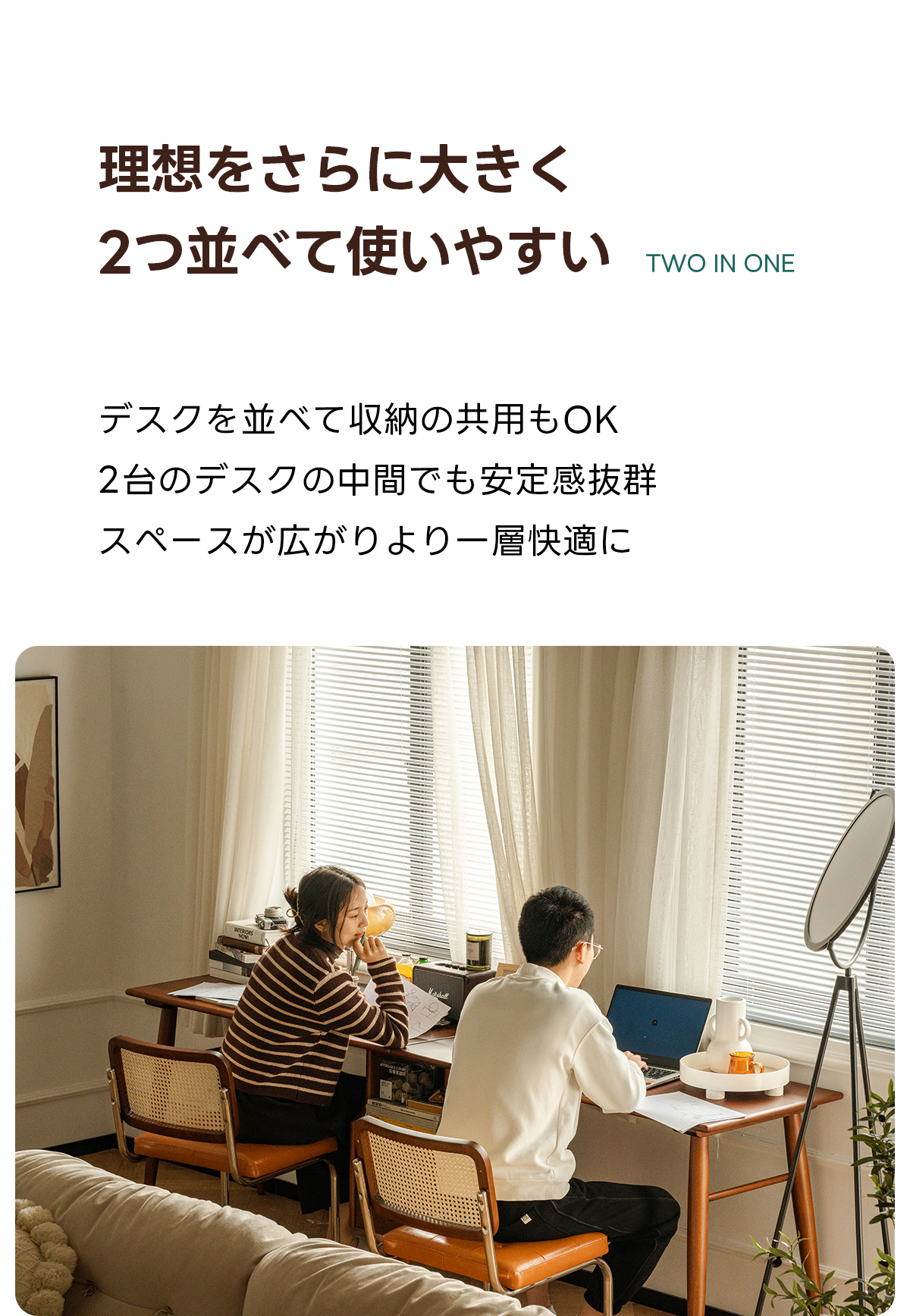 - 【多用途な適用シーン】:広々とした作業スペースと2つの引き出し、1つのオープンスペースを備え、一人暮らしやカップル、学生、オフィスでの使用に最適です。